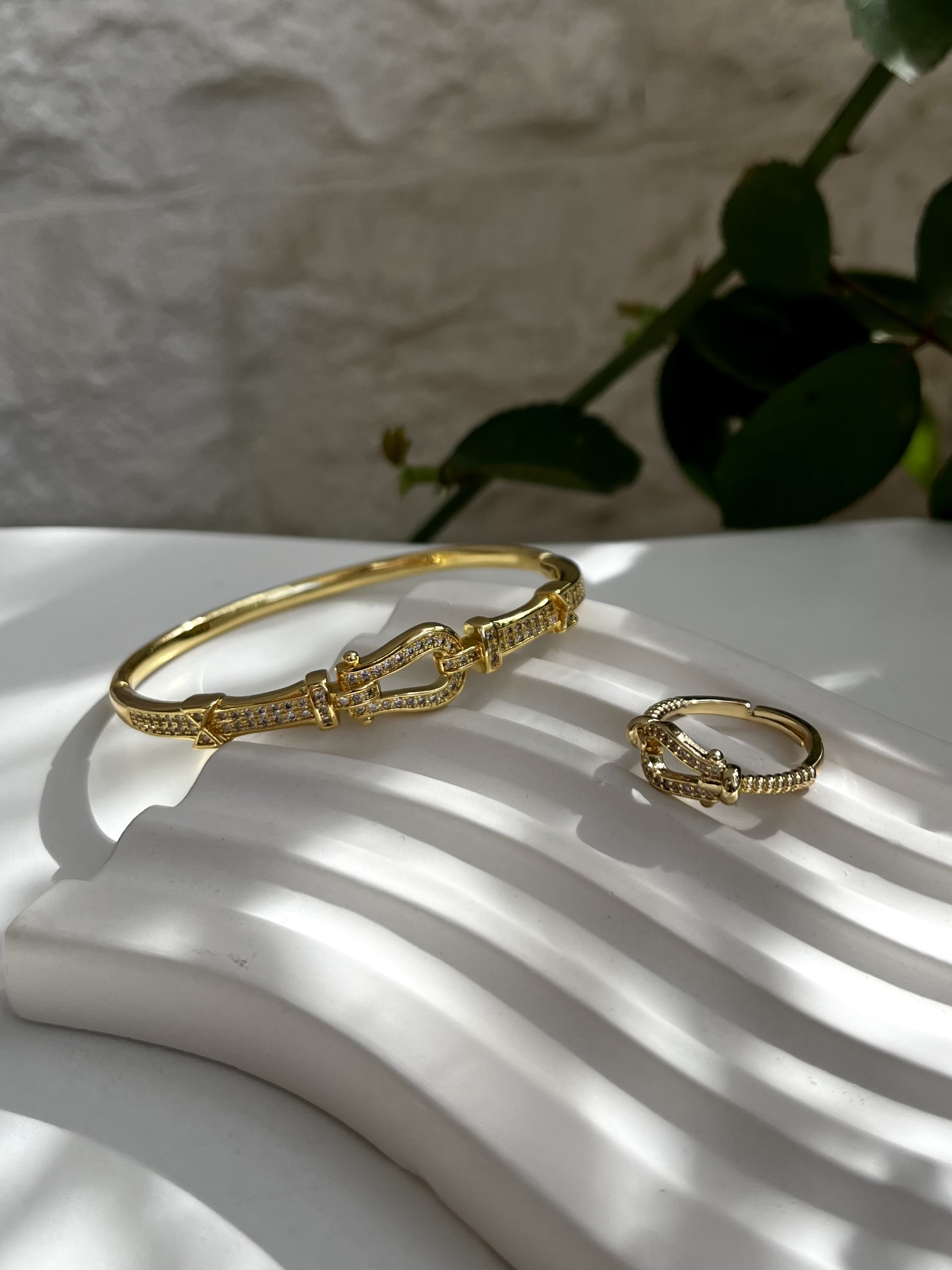 ست بنگل و انگشتر طرح طلا | فول نگین | استیل | کیفیت درجه1 | فری سایز