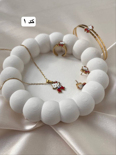 سرویس زیورآلات بچگانه | طرح کیتی | جنس برنج آبکاری | فری‌سایز