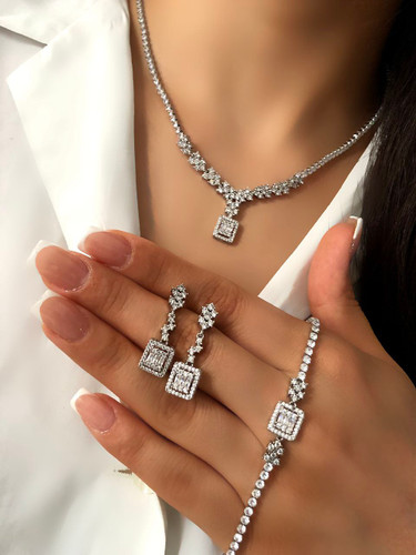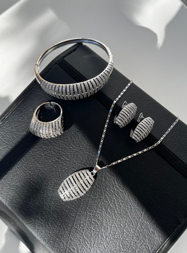 سرویس لوکس زنانه | جواهری فول نگین | نگین مخراج کاری شده | برنج آبکاری رادیوم نقره | کیفیت درجه ۱