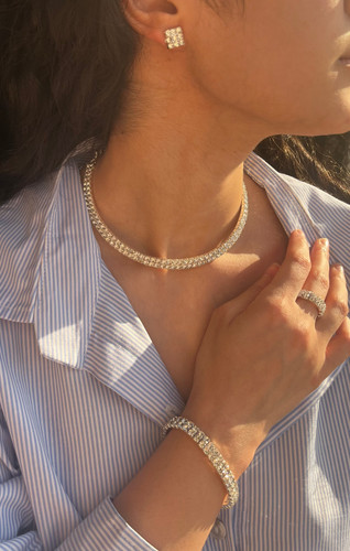 سرویس جواهری | طوق(چوکر) | فول نگین تک رج + ۲ رج | نگین مخارجکاری | ضدحساسیت | کیفیت درجه 1