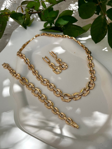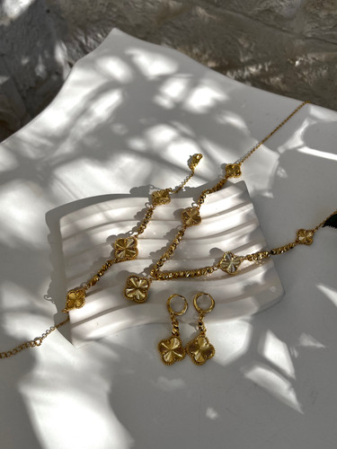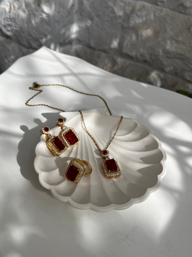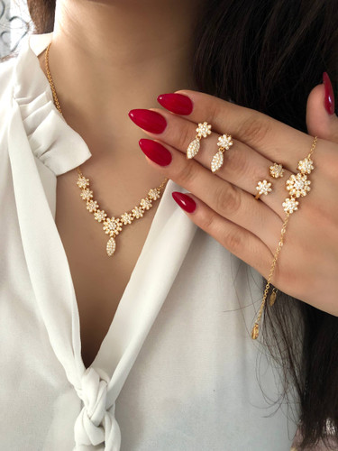 سرویس لوکس زنانه | جواهری فول نگین طلایی | نگین مخراج کاری شده | برنج آبکاری رادیوم نقره | کیفیت درجه ۱