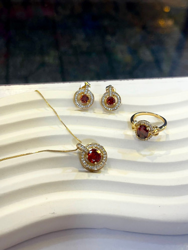 نیم ست عقیق فول نگین | کریستال زمرد | برند ژوپینگ | زنجیر ونیزی ژوپینگ | کوپر آبکاری با کیفیت | کیفیت درجه ۱ناموجود