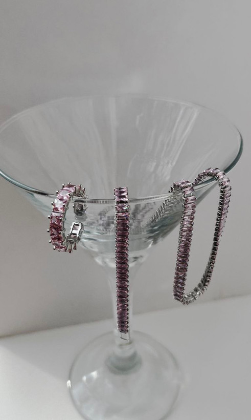 این ست شامل گردنبند، دستبند و انگشتر با نگینهای باگت صورتیه که خیلی تمیز کار شده. جنسش از برنجه و با آبکاری رادیوم پوشونده شده تا براقیتش رو حفظ کنه.