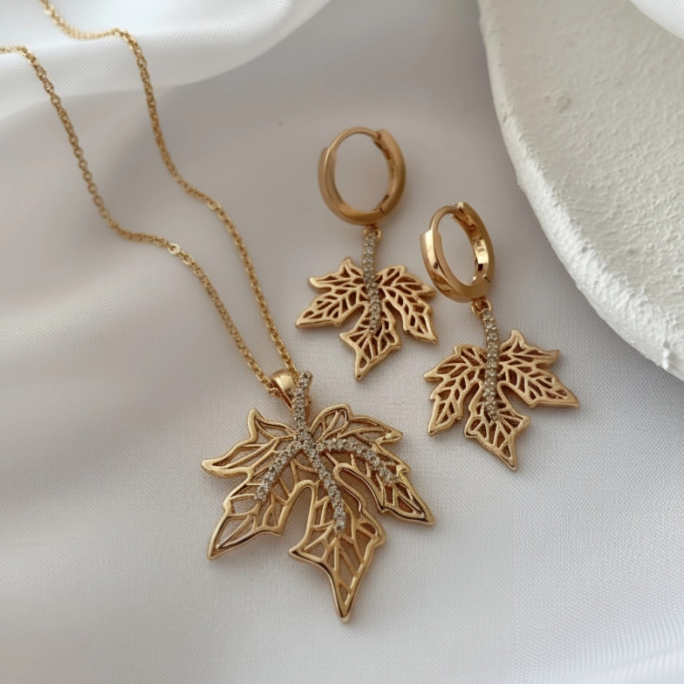 یه نیم ست شیک و چشمگیر با طرح برگ نیمه نگین که توی همون نگاه اول دل میبره ✨