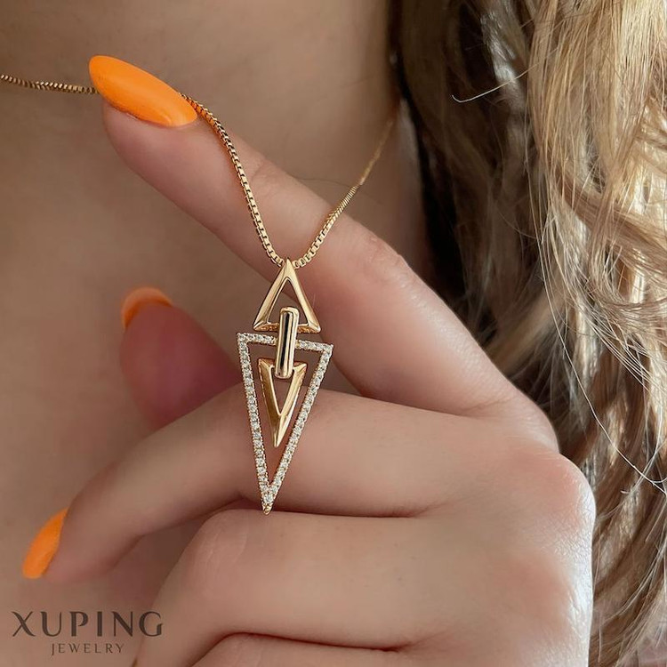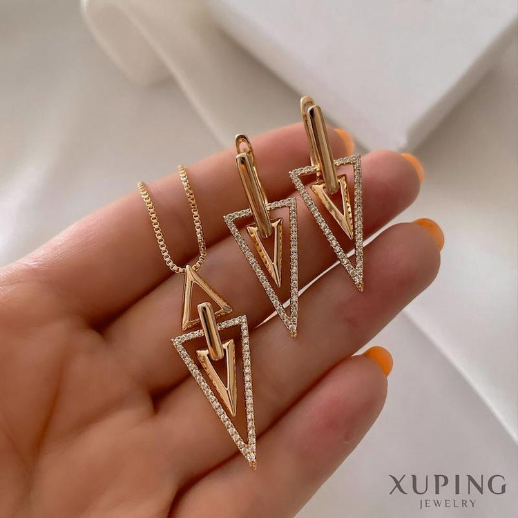 این کار با طرح مثلثی نیمه نگین مطابق ترند روز طراحی شده و جنسش از مس و آبکاری طلاست و ظاهرش اصلاً با طلا مو نمیزنه!