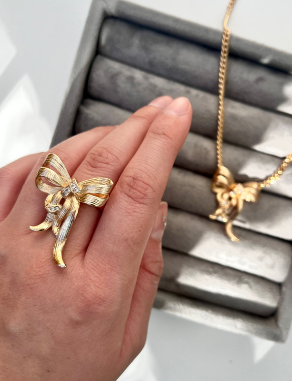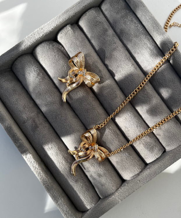 ست گردنبند و انگشتر فشن | طرح پاپیون طلایی | برنج آبکاری طلا ۱۴ عیار | پوشش نانو ضدحساسیت
