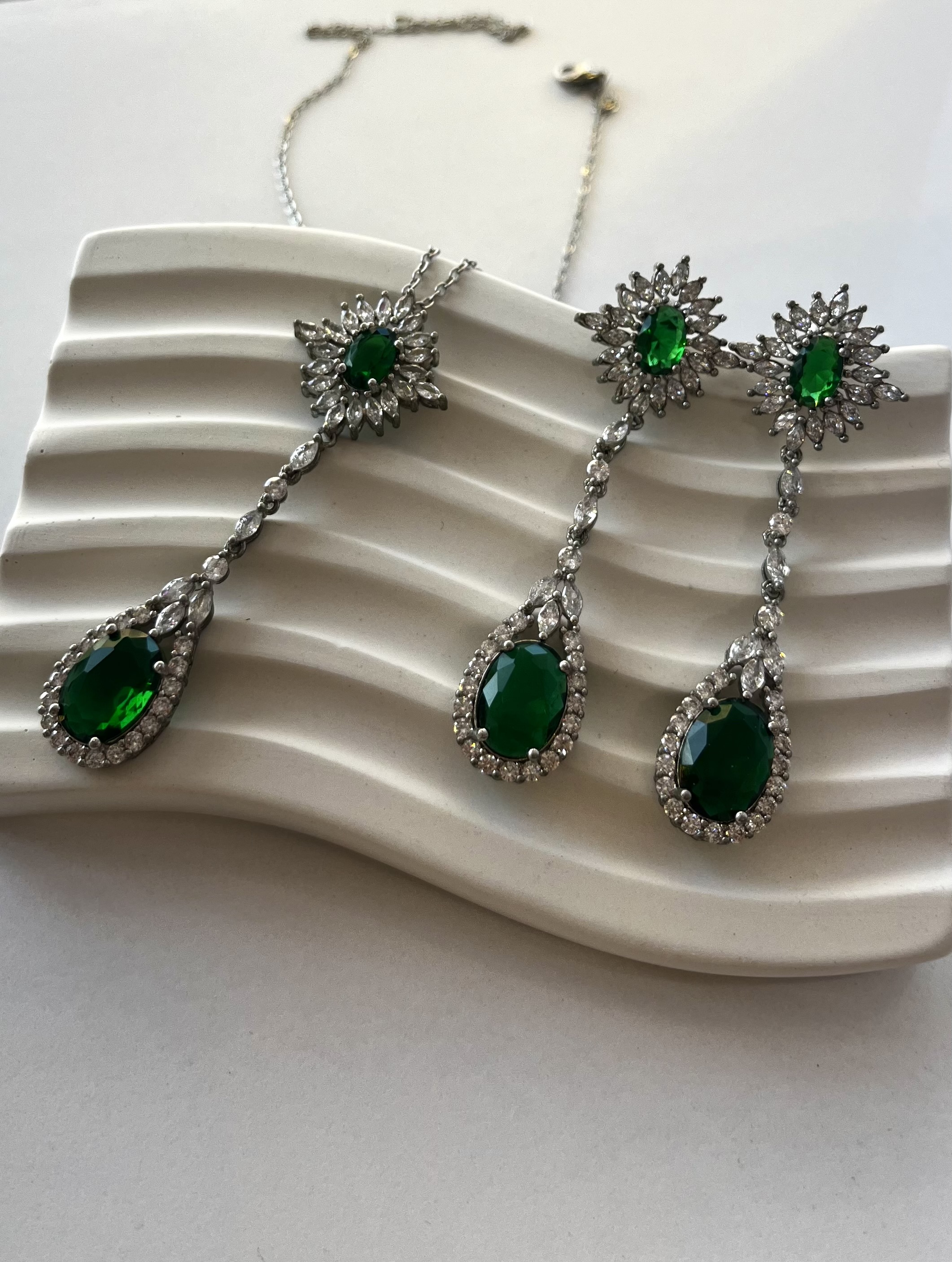 فول نگین اشکی با برق خفن، ساختهشده از برنج آبکاری نقره رادیوم که هم ظاهر لوکس داره هم دوام بالا.