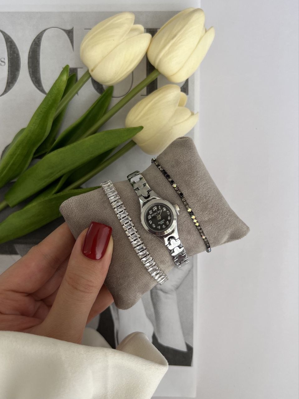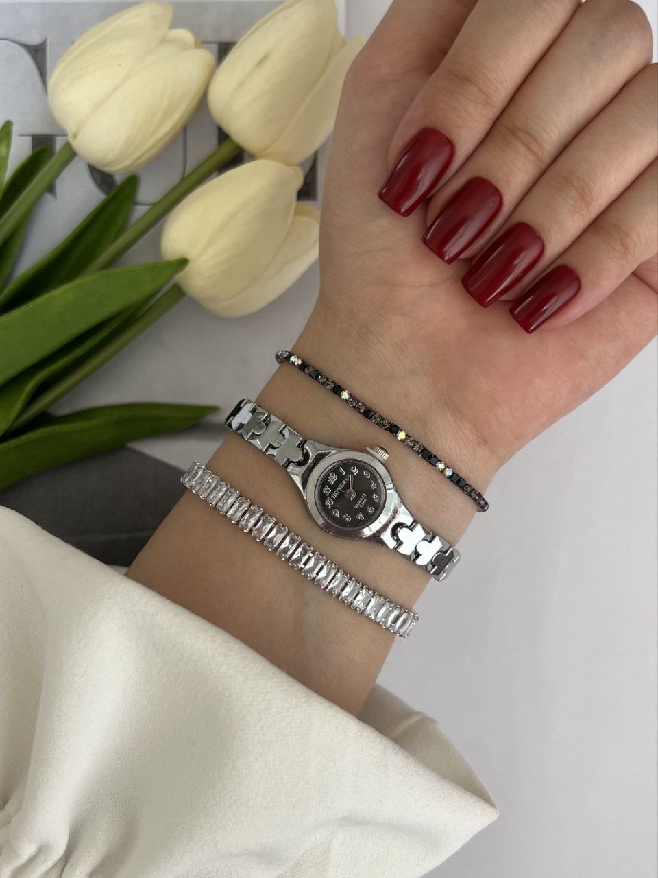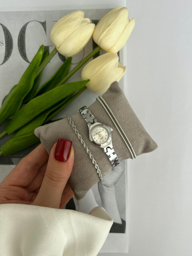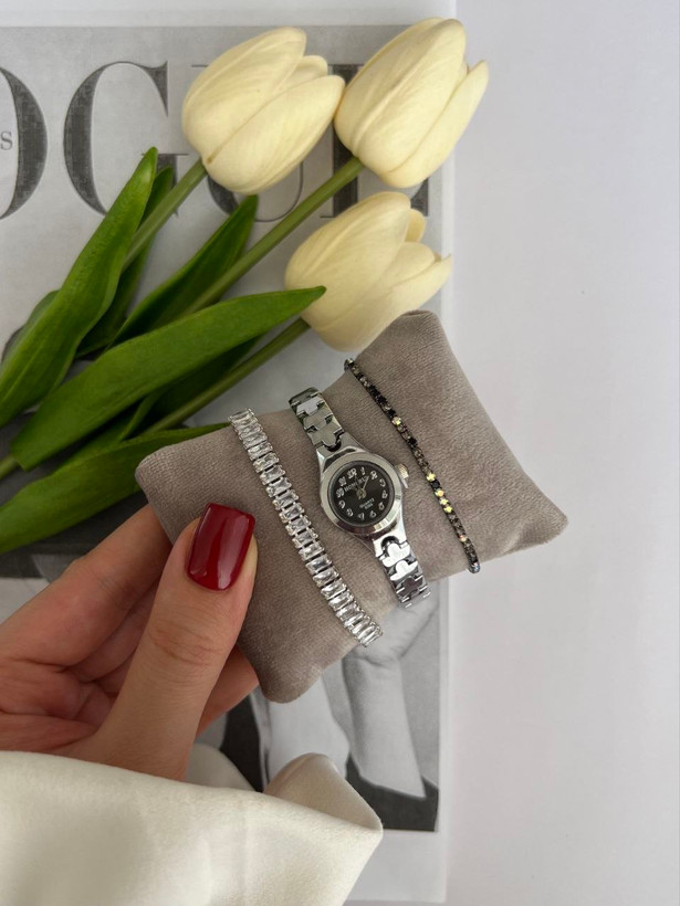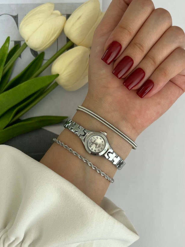 ساعت زنانه هانگری با بند استیل و بدنه مراقبتی در دورنگ، یه انتخاب شیک و همهپسنده که بهراحتی با هر استایلی ست میشه ⌚✨