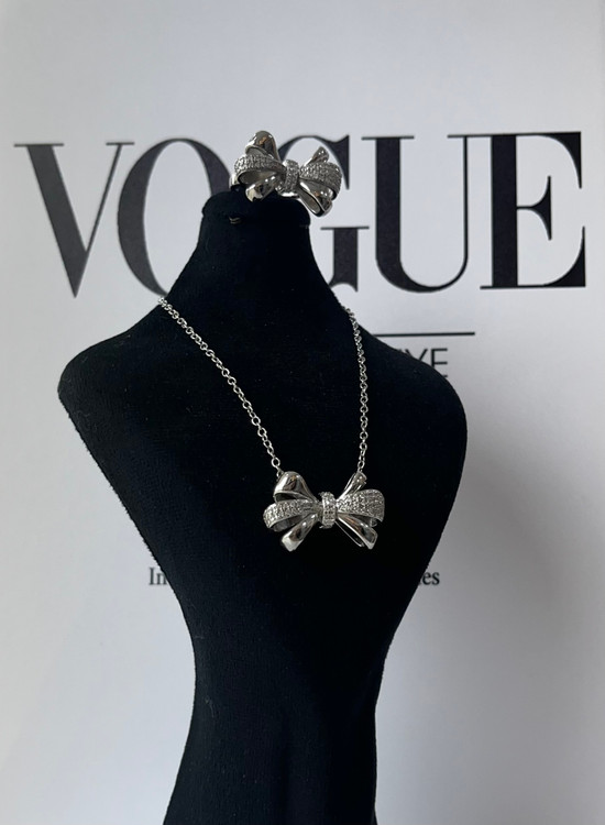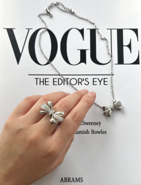 اگه دنبال یه ست ظریف و خاصی که هم توی استایل روزمره بدرخشه هم توی مهمونیها، این ست گردنبند و انگشتر پاپیونی دقیقاً همونه! ✨