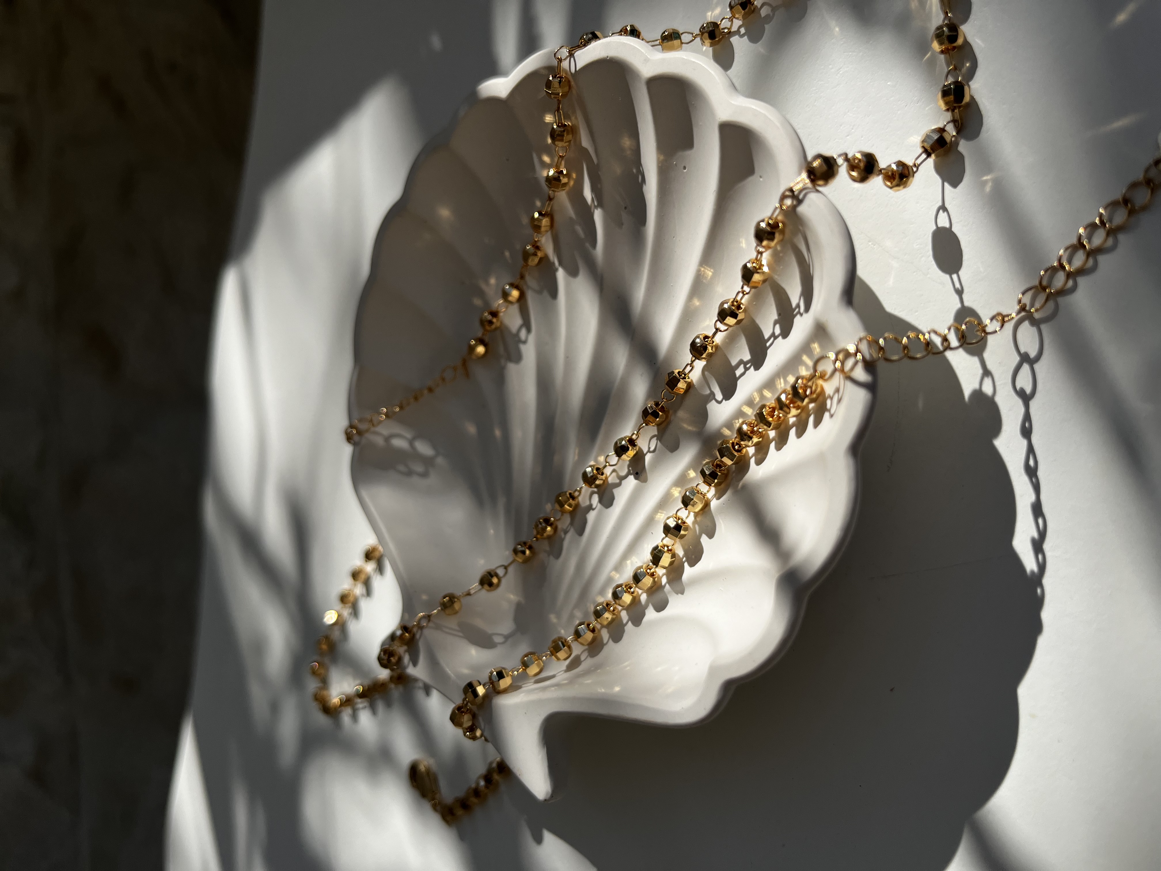 ست گردنبند و دستبند توپی طلایی یه انتخاب شیک و همیشهمده که با هر استایلی قشنگ میشینه.
