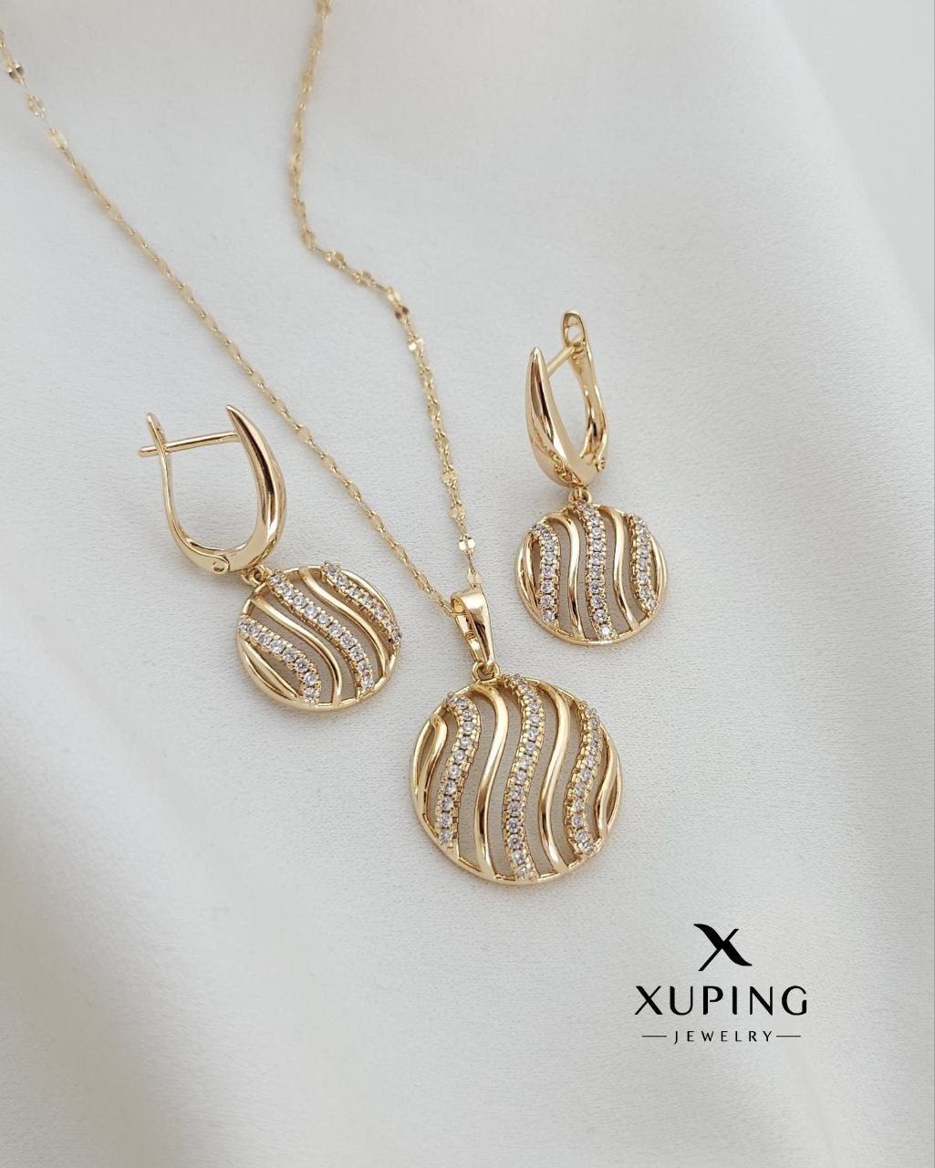 نگینهاش کاملاً محکم هستن و ریزش ندارن. یه ست کامل با زنجیر ژوپینگ که هم برای استفاده مداوم روزمره عالیه و هم توی مهمانیها حسابی میدرخشه.