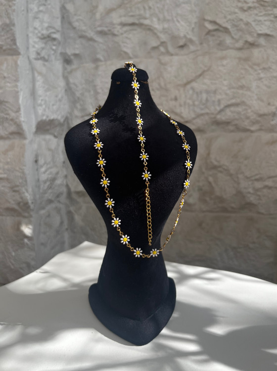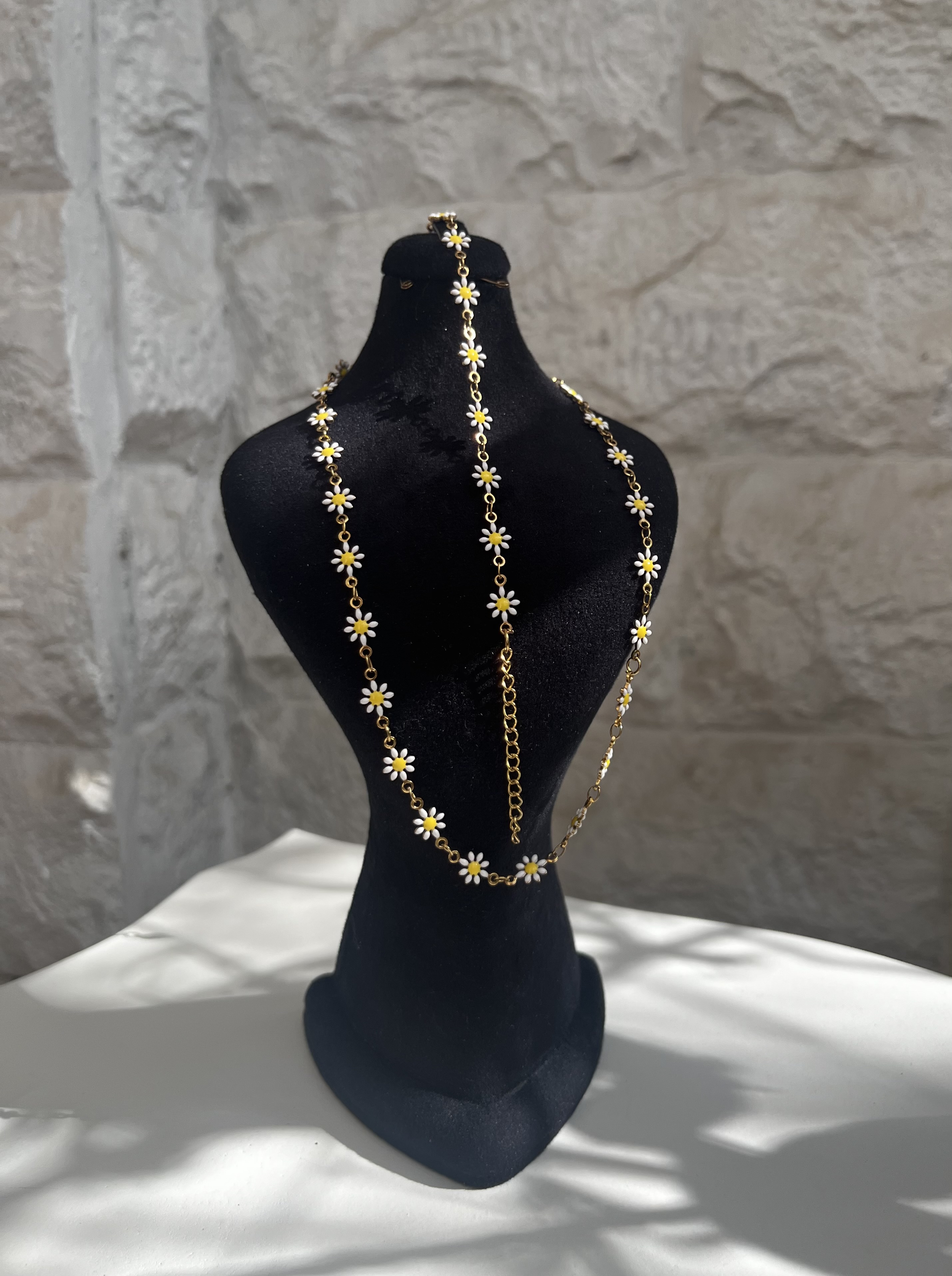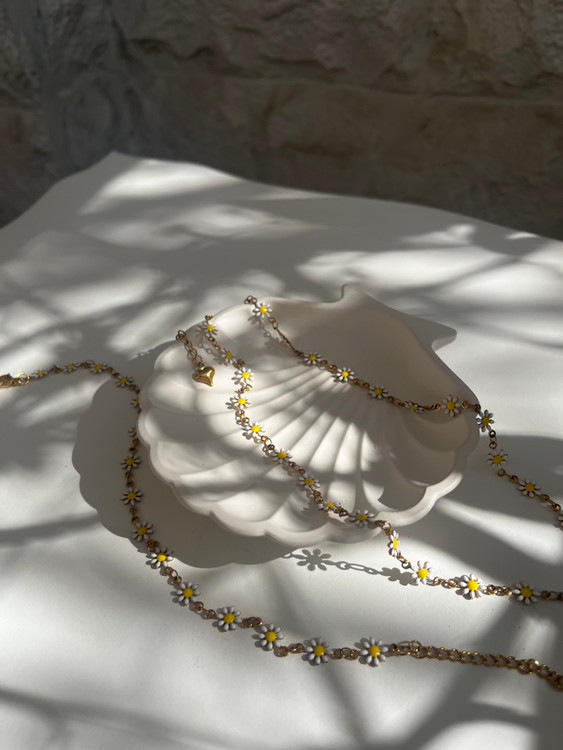 اگه دنبال یه ست ظریف و دلبری که هم خاص باشه هم همیشه مُد، ست گردنبند و دستبند بابونه طلایی ریز انتخابیه که سریع دلتو میبره 🌼✨