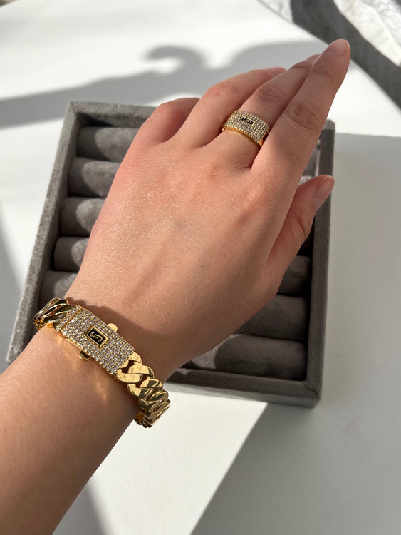 اگه عاشق کارای لاکچری و چشمگیری، این ست بنگل و انگشتر کارتیر طرح موناکو از برند NYH دقیقاً همون چیزیه که دنبالش بودی ✨