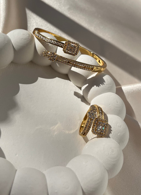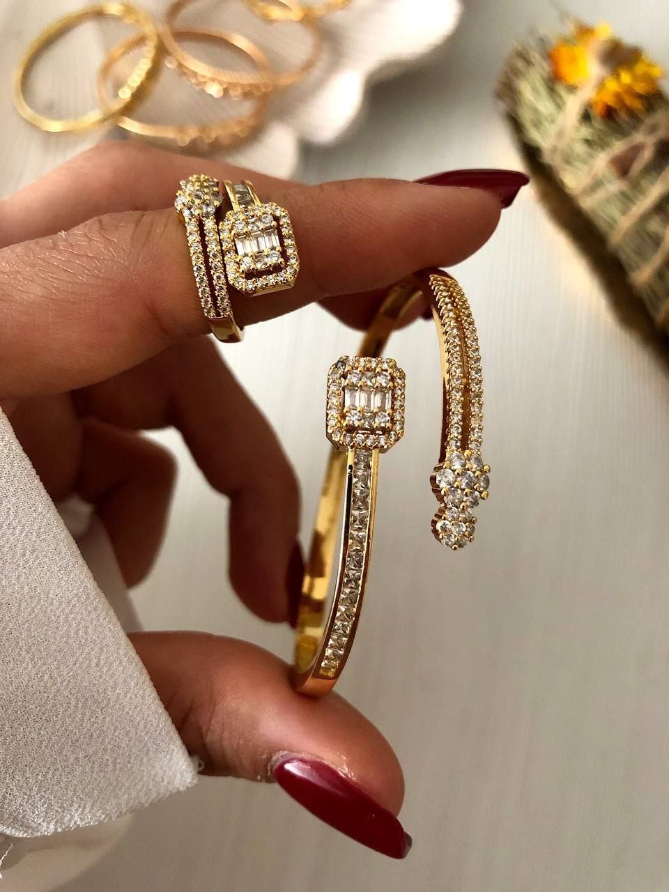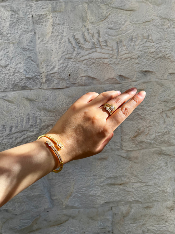 این ست دستبند النگویی و انگشتر از برند NYH، با طراحی فولنگین و کیفیت ساخت بسیار بالا، دقیقاً همون چیزیه که برای درخشش در مجالس و مهمانیها لازم دارید.