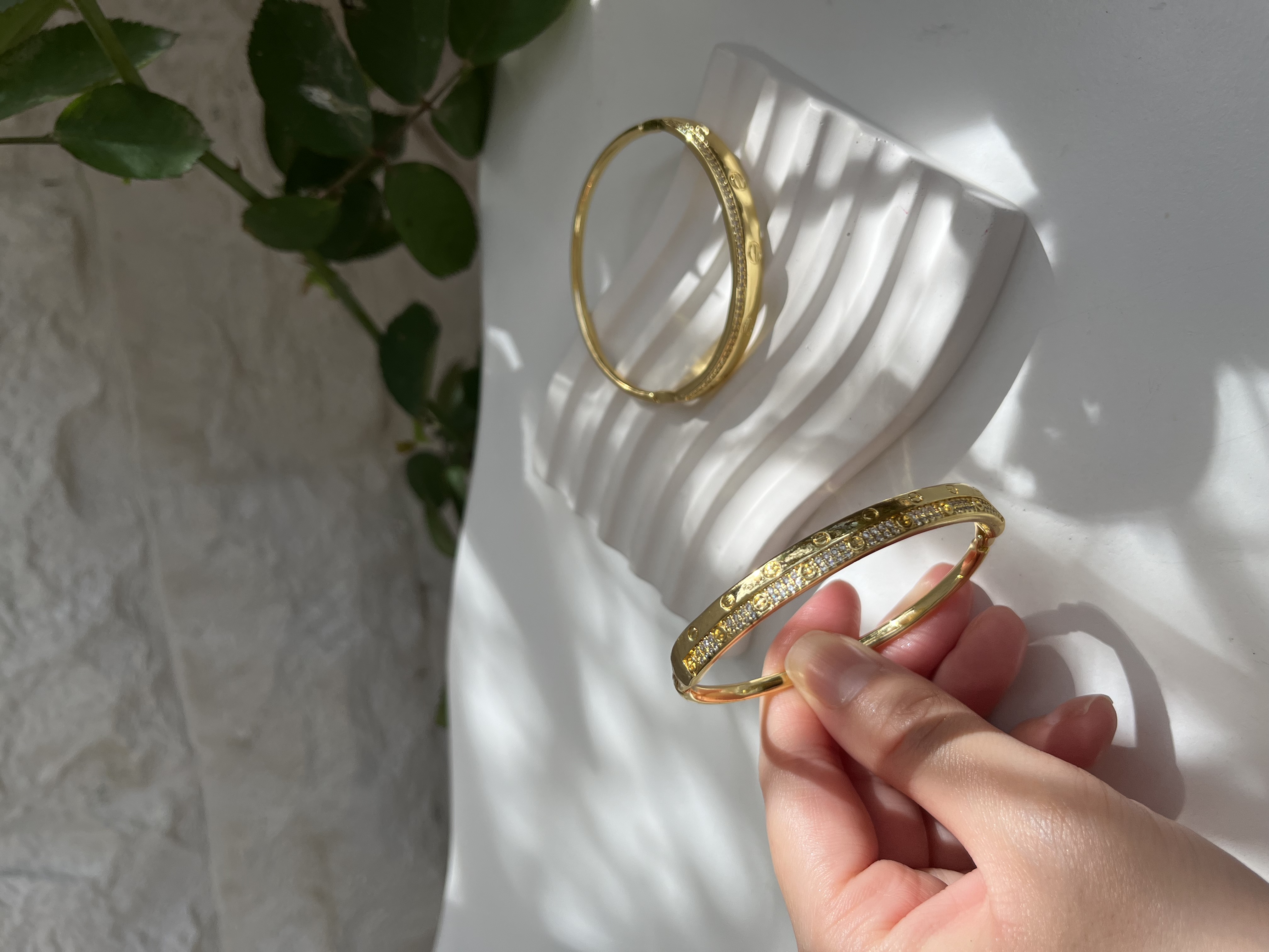 اگه عاشق کارای ظریف و لاکچریای، این بنگل های لوکس طرح طلای کارتیر فول نگین همون چیزیه که استایلتو خاصتر میکنه ✨💛