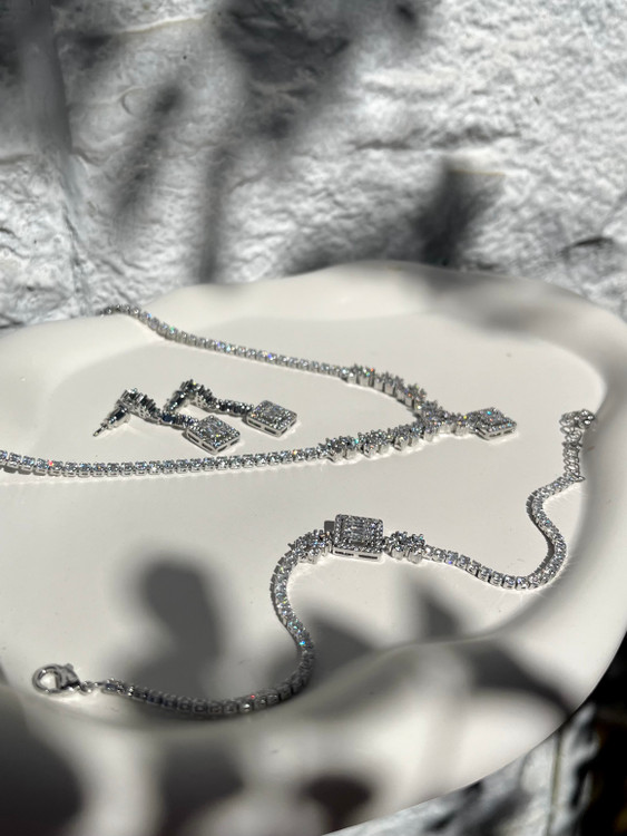 طراحی جواهری فول نگین با مخراجکاری ظریف، برق خیرهکنندهای بهت میده که از دور هم دیده میشه. از برنج با آبکاری رادیوم نقره و کیفیت درجه ۱ ساخته شده، ضدحساسیت هم هست؛ یعنی هم لاکچریه هم با خیال راحت میتونی ساعتها استفاده کنی.
