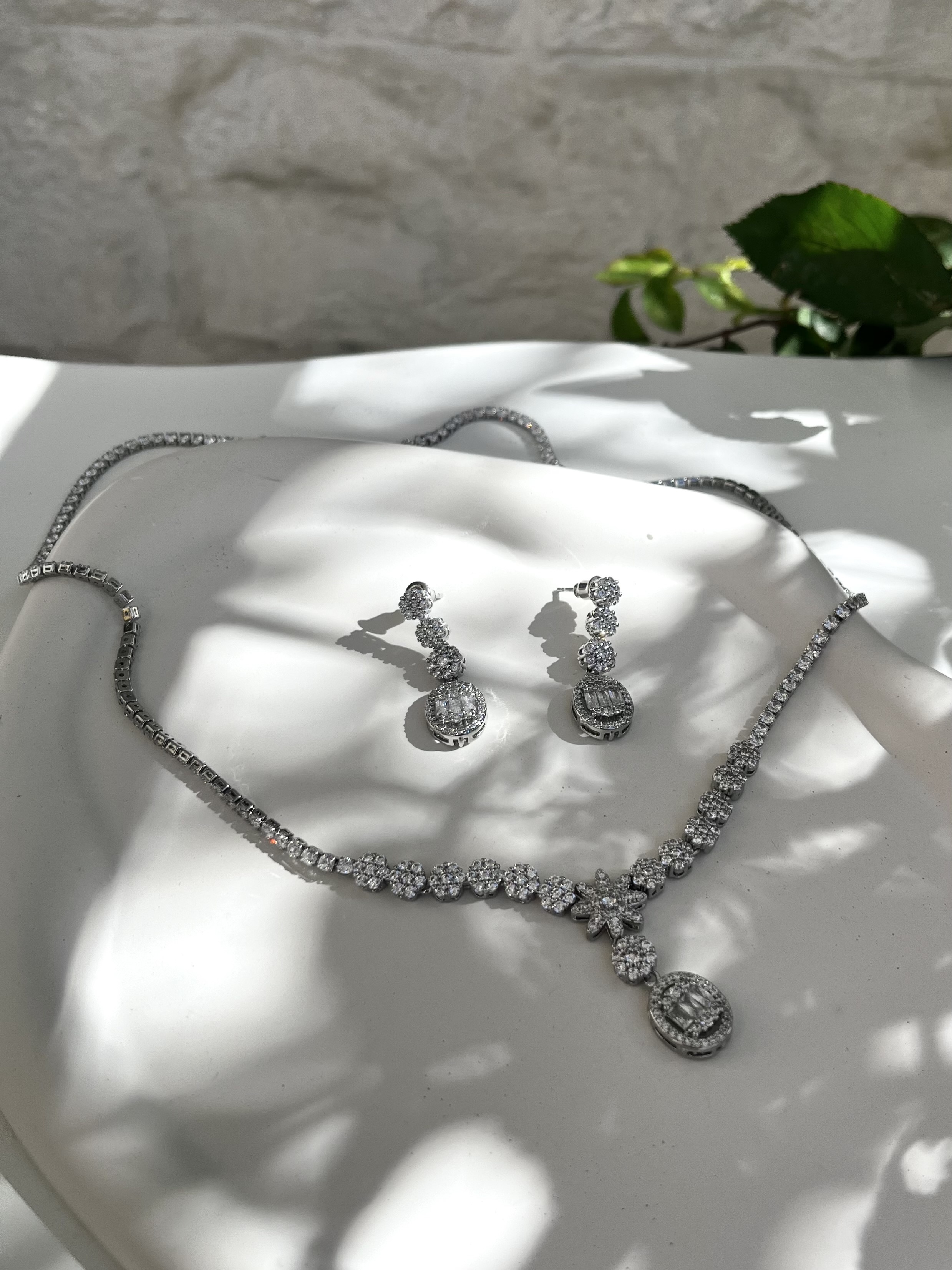 جواهری فول نگین با مخراجکاری ظریف که برقش از دور هم دیده میشه! از برنج با آبکاری رادیوم نقره و کیفیت درجه ۱ ساخته شده، ضدحساسیت هم هست؛ یعنی هم خیالت از موندگاری راحته هم از راحتی روی پوست. یه انتخاب خاص برای مجالس و مراسم که کاری میکنه مثل یه جواهر واقعی بدرخشی 🤍