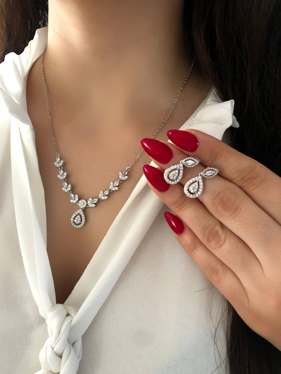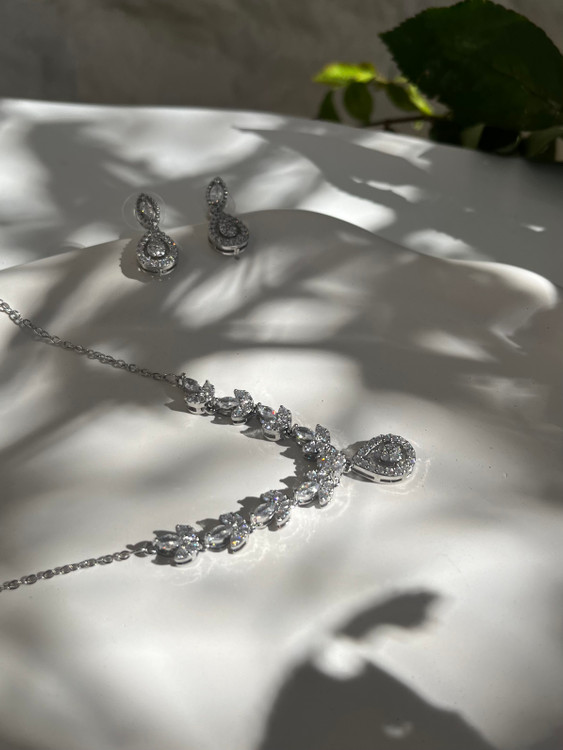 جواهری فول نگین با مخراجکاری ظریف که برقش از دور هم دیده میشه! از برنج با آبکاری رادیوم نقره و کیفیت درجه ۱ ساخته شده، ضدحساسیت هم هست؛ یعنی هم خیالت از موندگاری راحته هم از راحتی روی پوست. یه انتخاب خاص برای مجالس و مراسم که کاری میکنه مثل یه جواهر واقعی بدرخشی 🤍