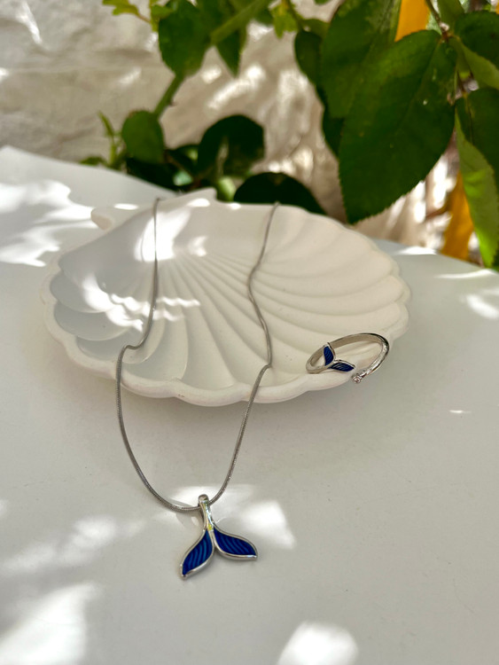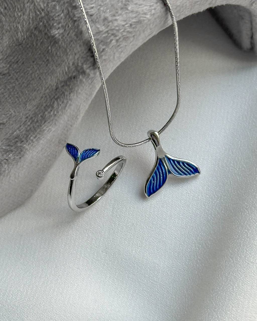 اگه عاشق اکسسوریهای خاص و مینیمالی، ست گردنبند و انگشتر وال آبی دقیقاً دلخواهته 🐋✨