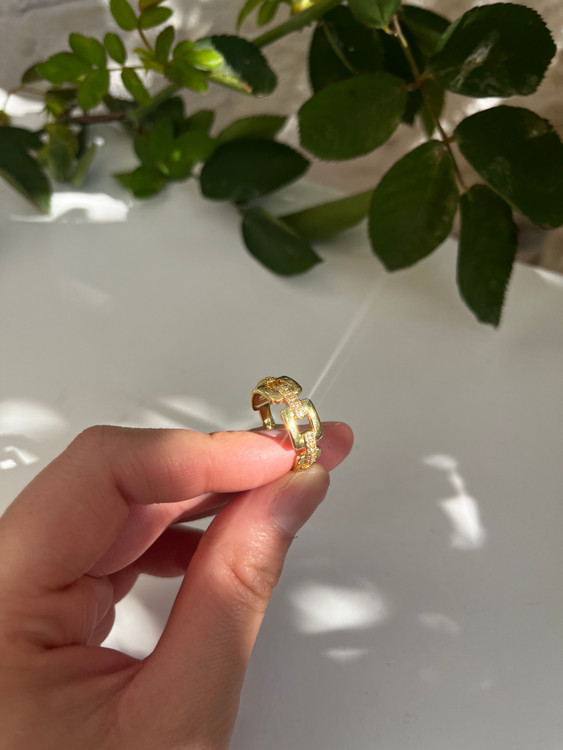 اگه دنبال یه انگشتر شیک و چشمگیر هستی، طراحی جواهری فول نگین با مخراجکاری ظریف این حلقه طرح کارتیر، برق خیرهکنندهای به دستات میده که از دور هم دیده میشه.