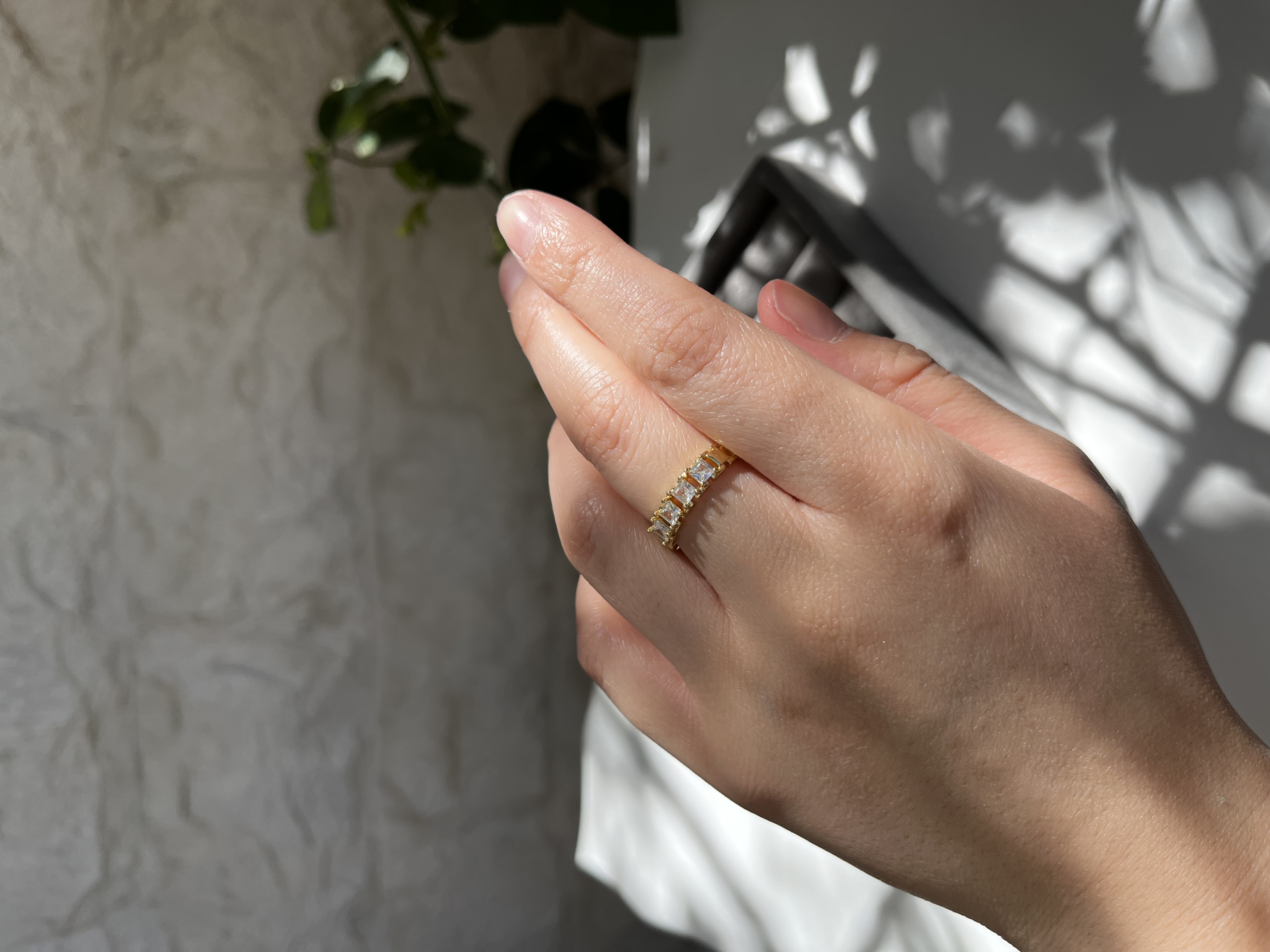 اگه دنبال یه انگشتر شیک و چشمگیر هستی، طراحی جواهری فول نگین با مخراجکاری ظریف این حلقه، برق خیرهکنندهای به دستات میده که از دور هم دیده میشه.