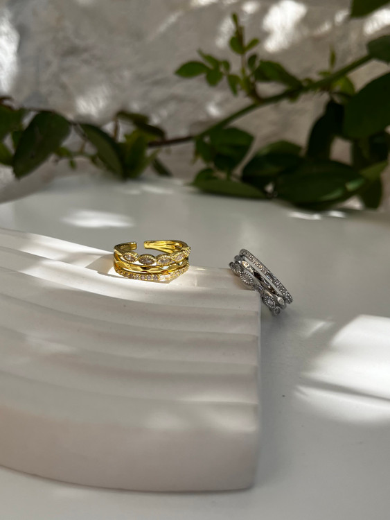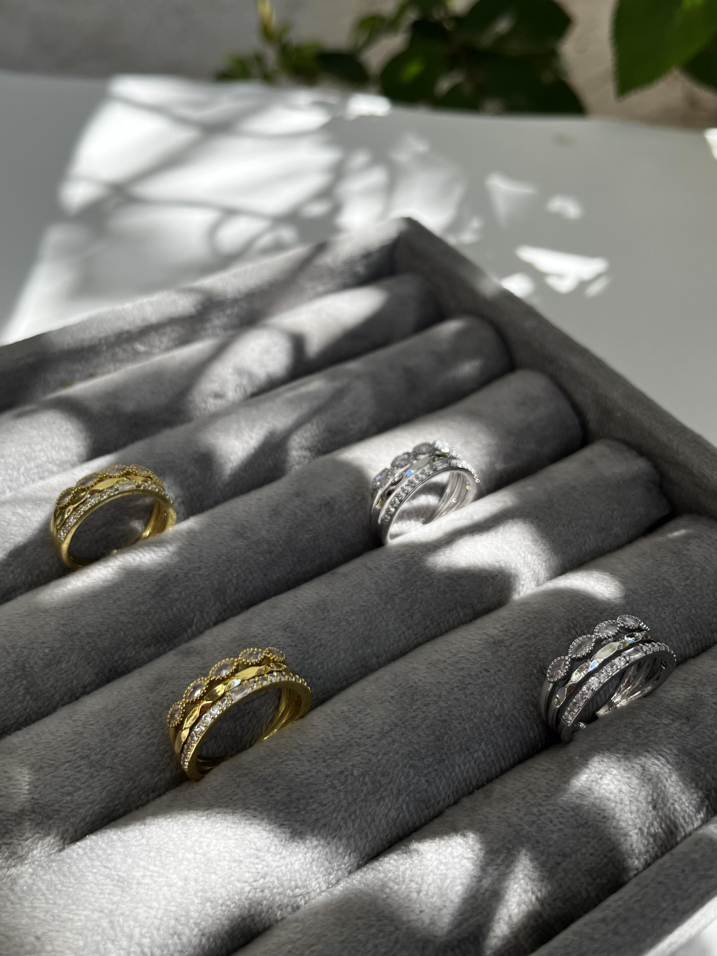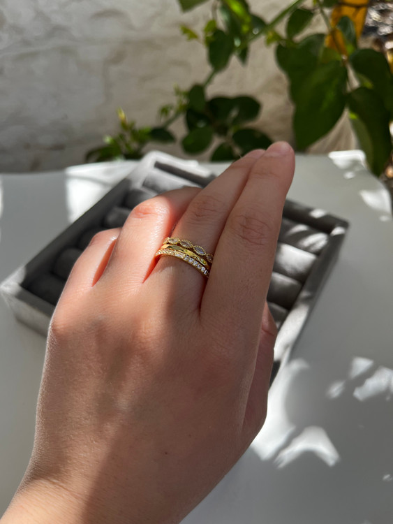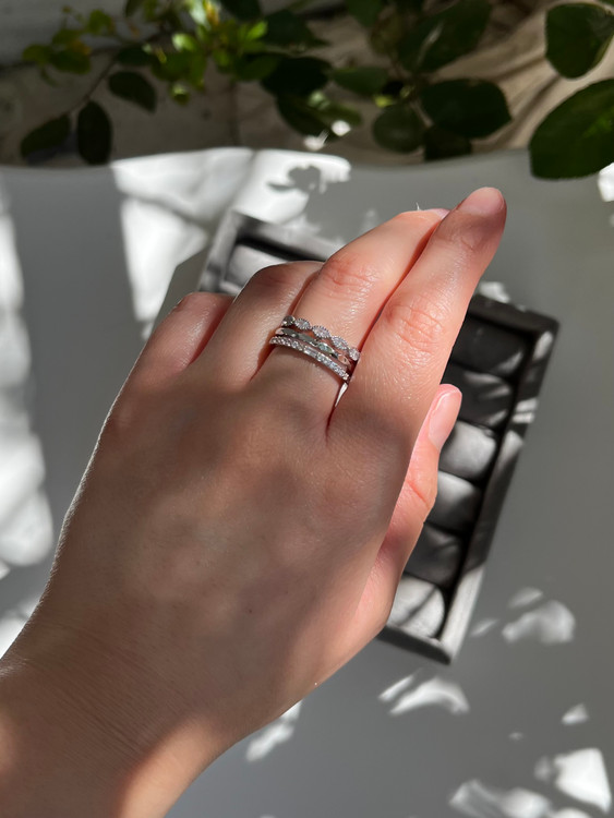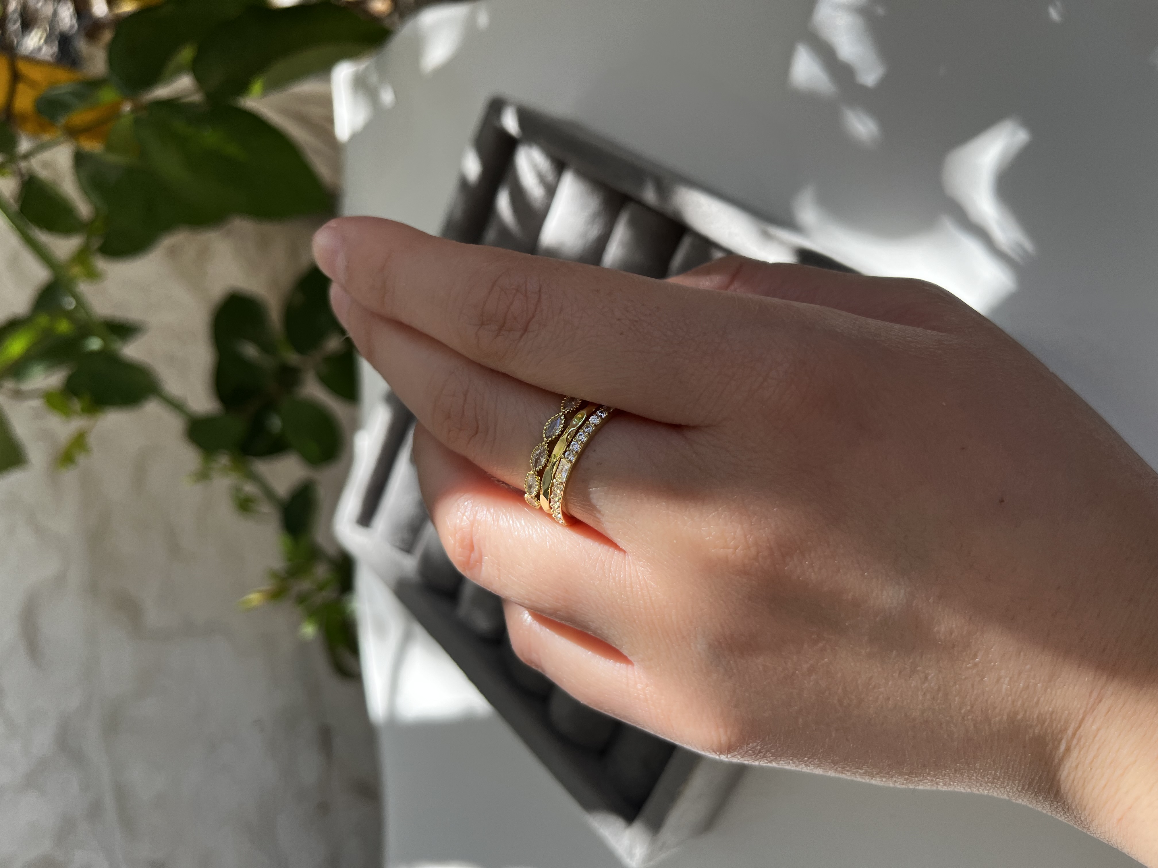 اگه دنبال یه انگشتر شیک و چشمگیر هستی، طراحی جواهری فول نگین با مخراجکاری ظریف این حلقه، برق خیرهکنندهای به دستات میده که از دور هم دیده میشه.