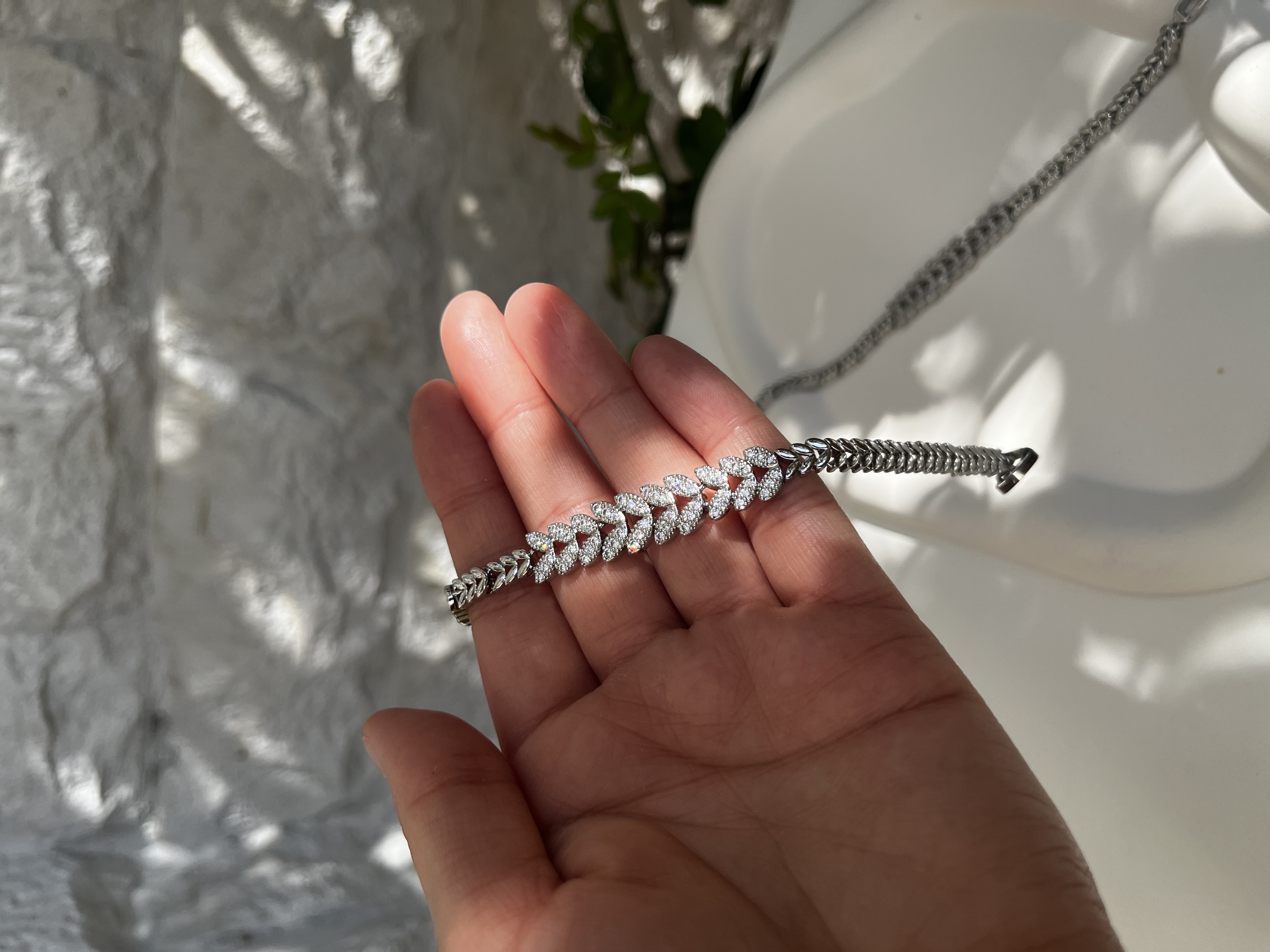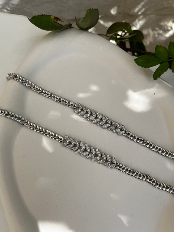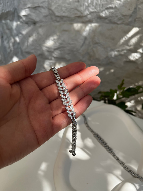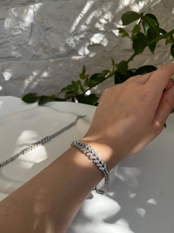 این دستبند لوکس مجلسی فول نگین برنج با آبکاری رادیوم باکیفیت همون چیزیه که لازم داری.