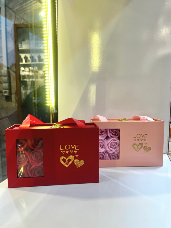 جعبه نیم ست کادویی گل رز | بگ دار | صورتی و قرمز | کیفیت عالی