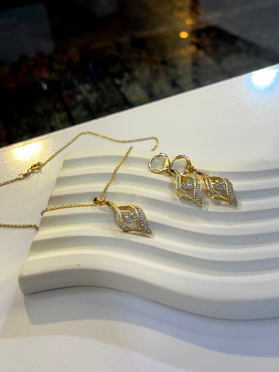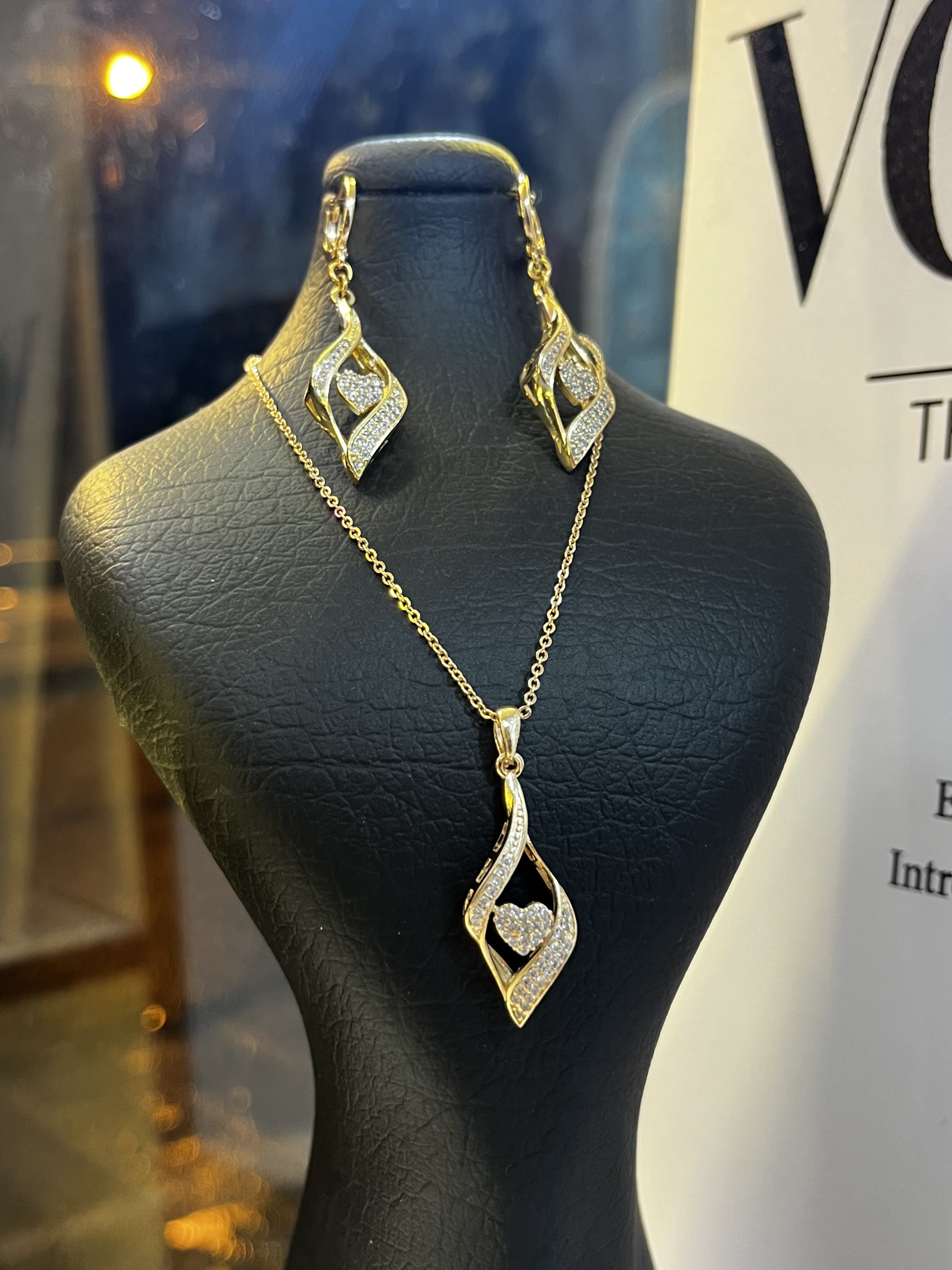 اگه دنبال یه نیم ست شیک و چشمگیر هستی که هم برای استفاده روزمره مناسب باشه هم مهمونی، این نیم ست طرح قلب قاب لوزی طلاروس دقیقاً همونه 👌