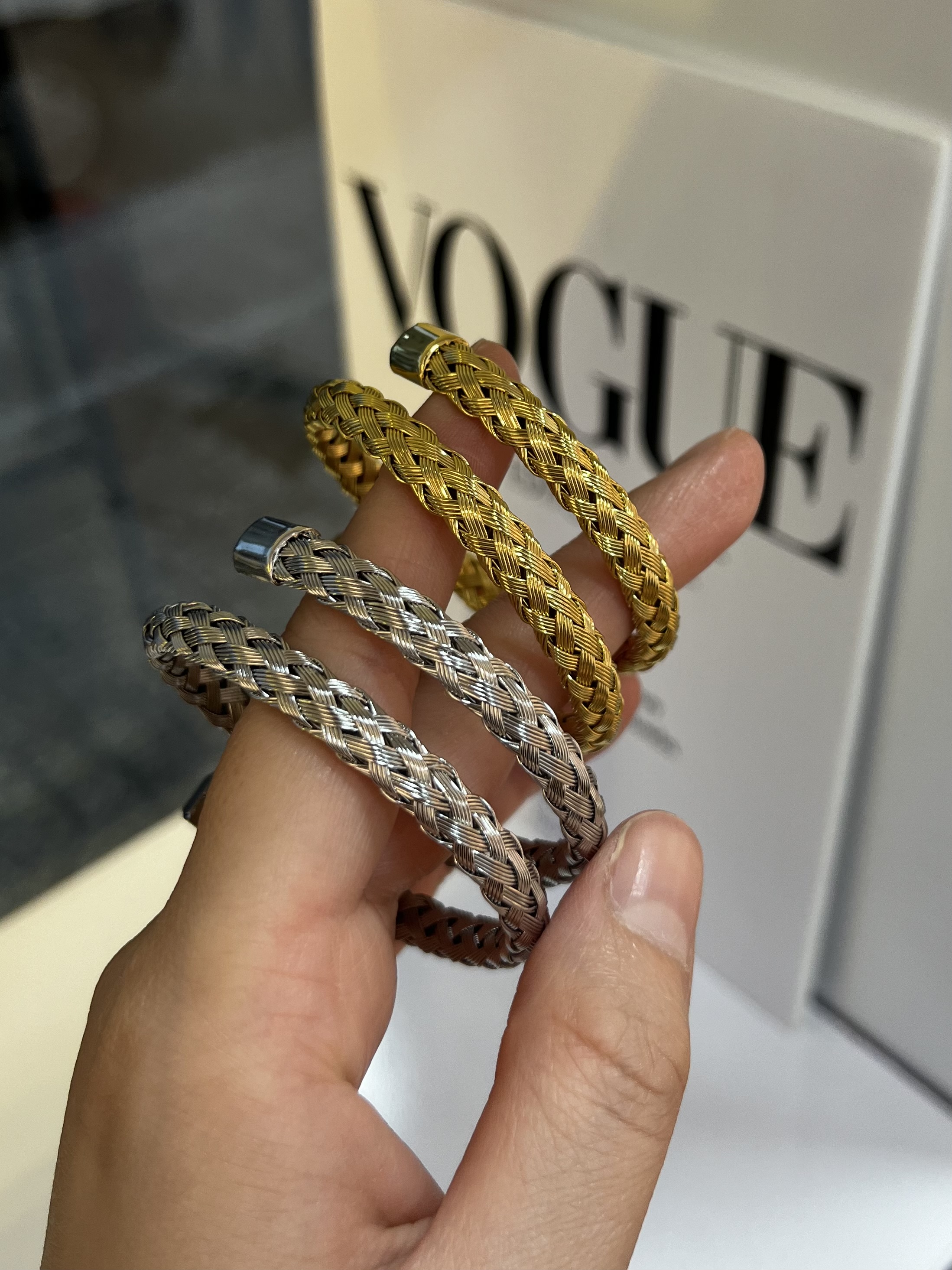دستبند بنگل حصیری دو لاین یه انتخاب خاص و همیشه مده که هم توی استایل روزمره میدرخشه هم توی مهمونی و مجالس.