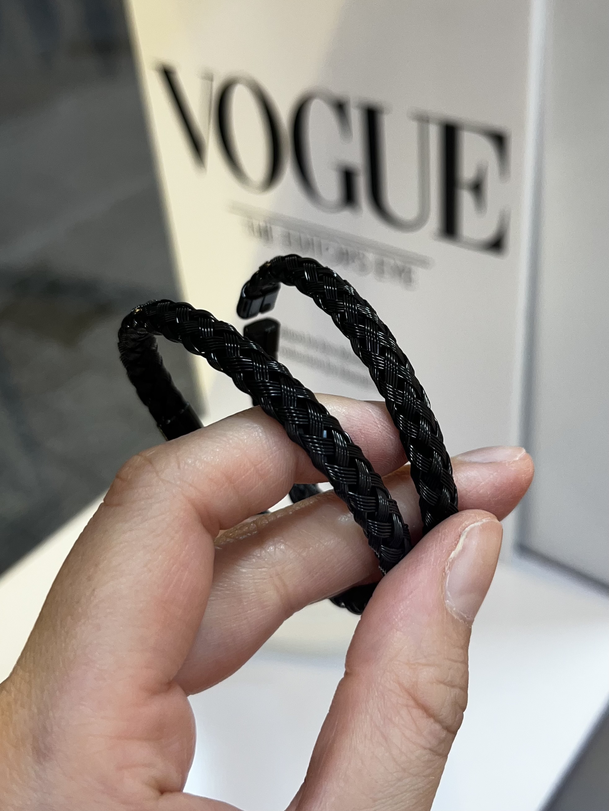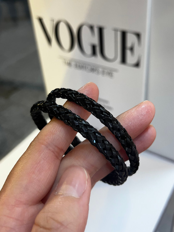 دستبند بنگل حصیری مشکی یه انتخاب خاص و همیشه مده که هم توی استایل روزمره میدرخشه هم توی مهمونی و مجالس.