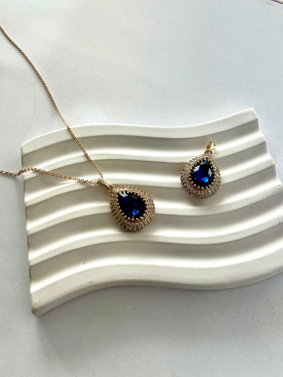 اگه دنبال یه پلاک گردنی شیک و مجلسی هستی که هم برای استفاده روزمره مناسب باشه هم مهمونی، این پلاک زمرد آبی فول نگین دقیقاً همونه 💙
