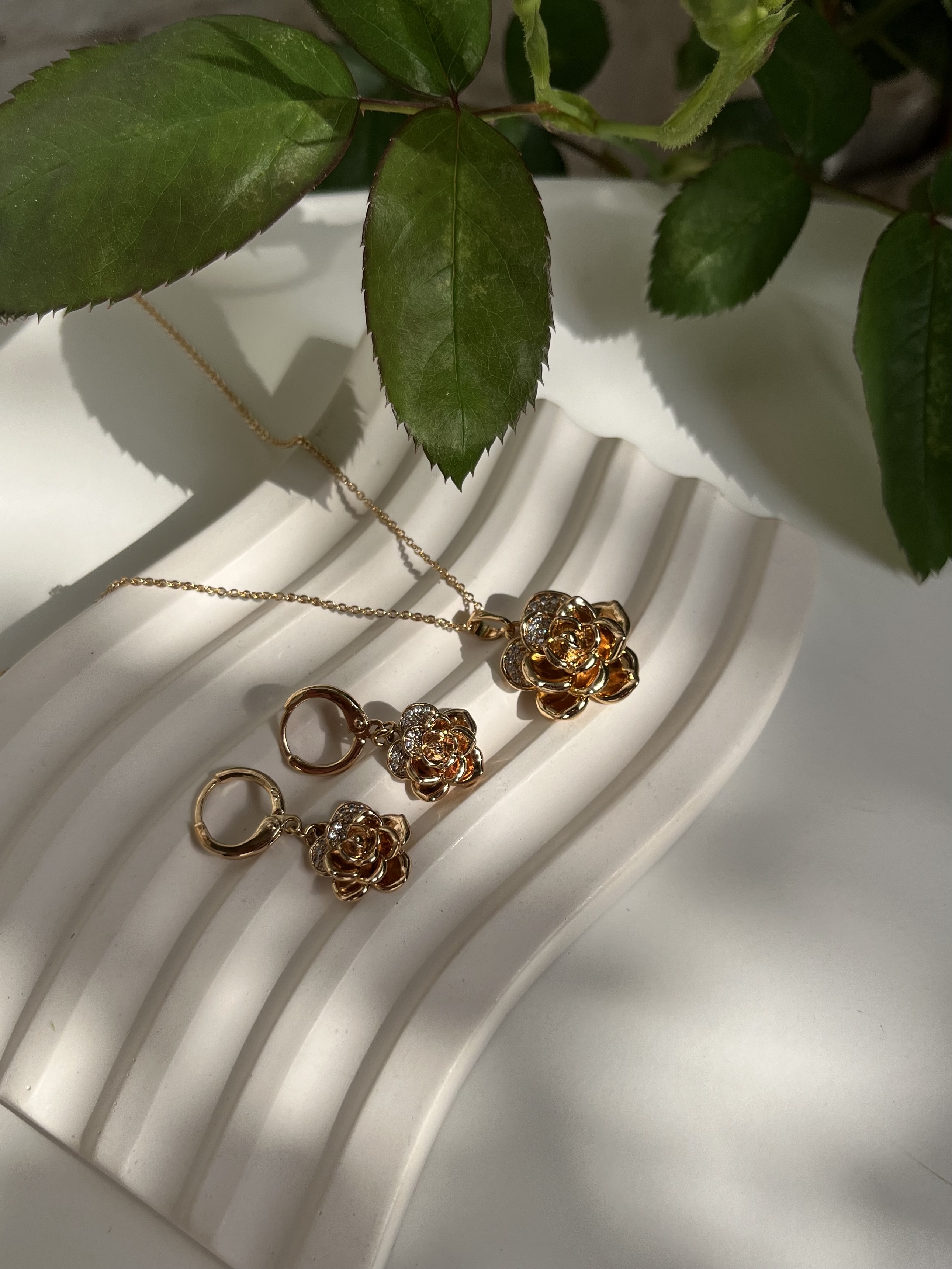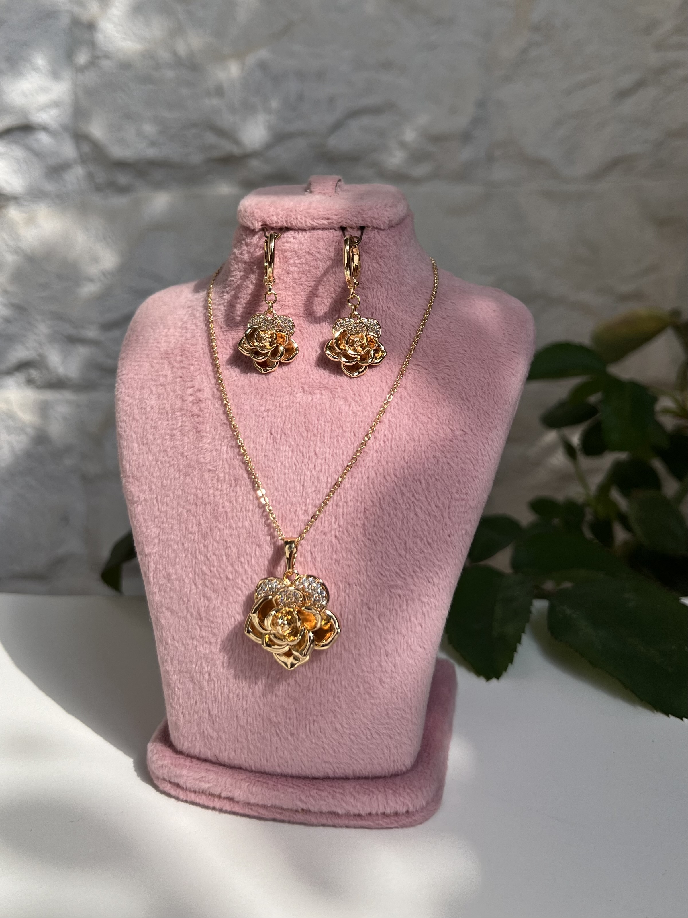 یه نیم ست شیک و چشمگیر با طرح گل رز نیمه نگین که توی همون نگاه اول عاشقش میشید 🌹