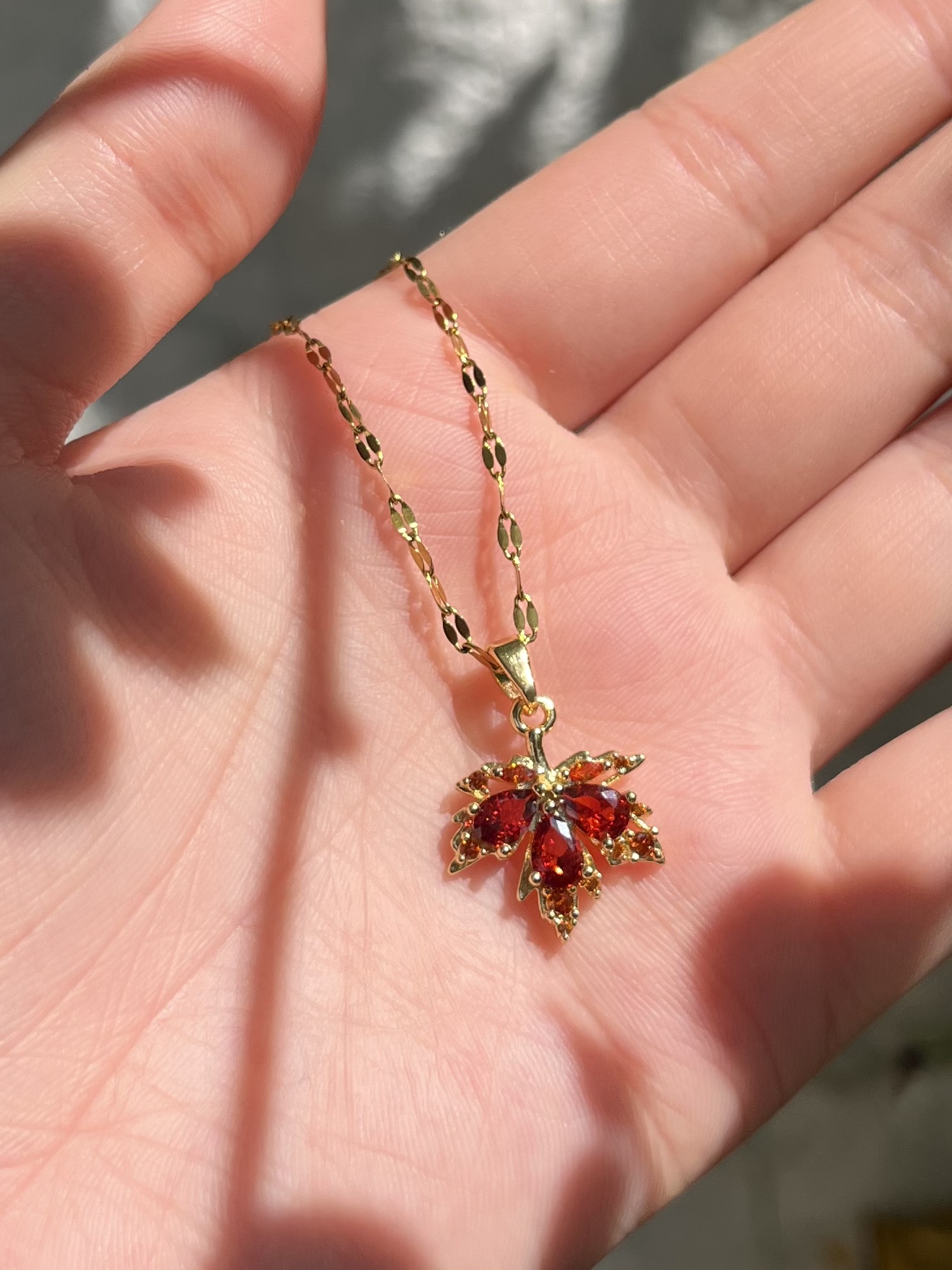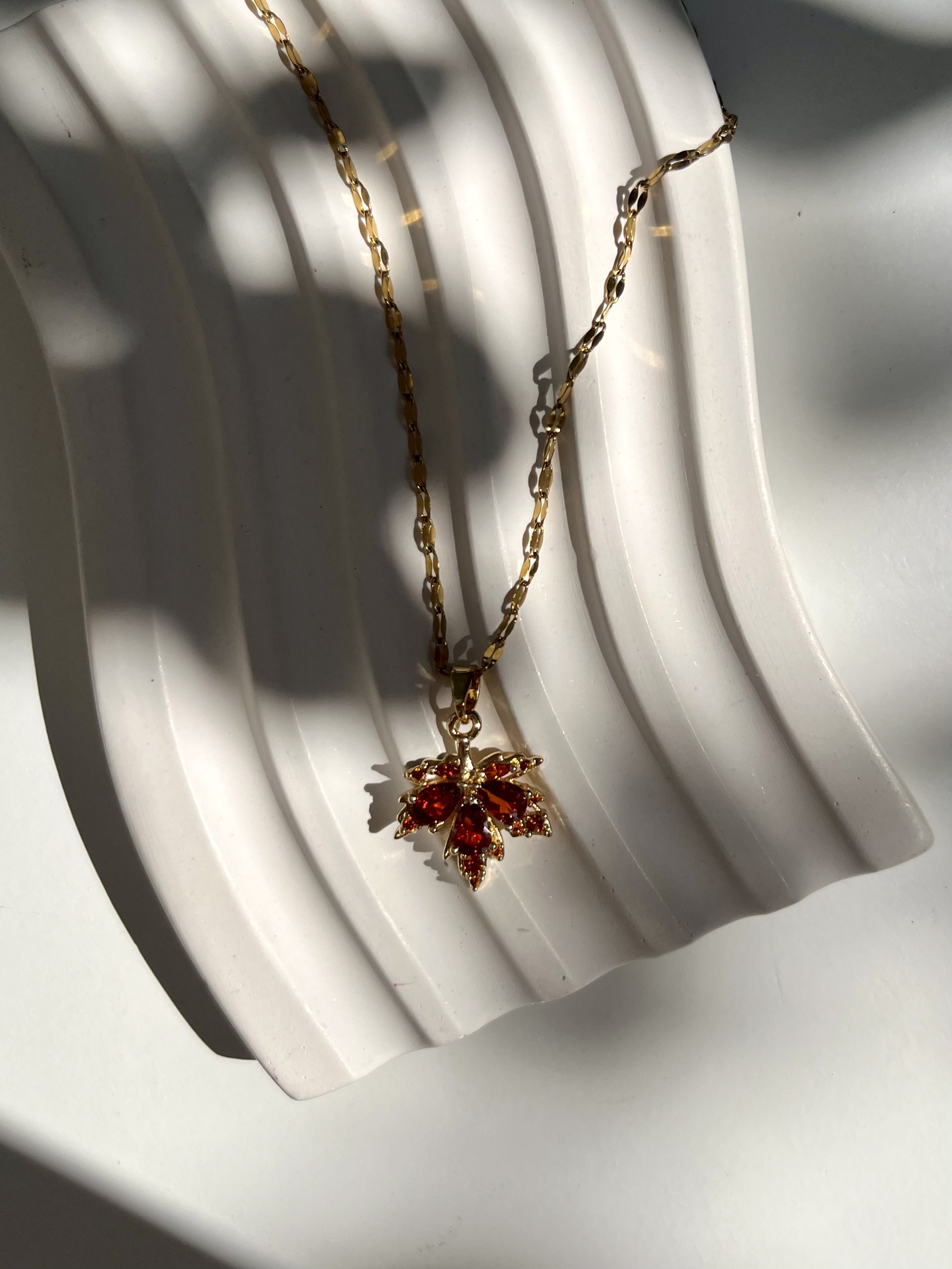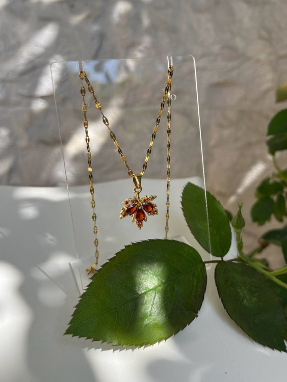 یه گردنبند شیک و چشمگیر با طرح برگ پائیزی نارنجی که توی همون نگاه اول دل میبره 🍁