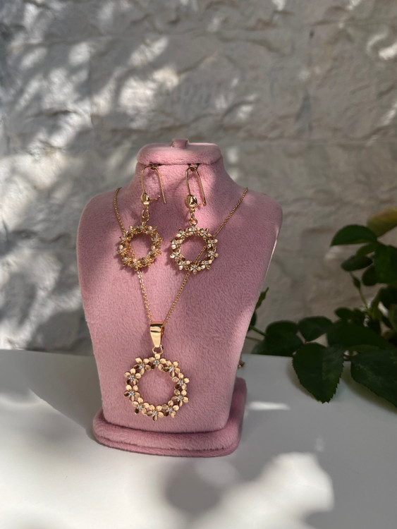 اگه دنبال یه اکسسوری میگردی که هم نمای شیکی داشته باشه و هم از مد نره، این نیم ست تراش شکوفه نگین دار همون چیزیه که لازم داری🌸