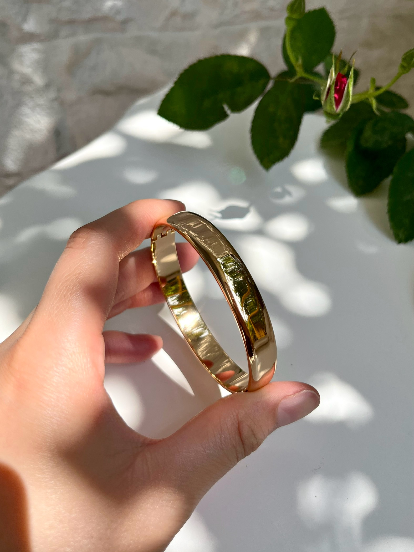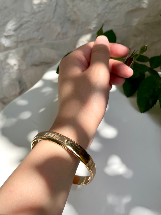 این بنگل با آبکاری طلای باکیفیت تولید شده که باعث درخشندگی بالا و ماندگاری طولانی میشه. ضدحساسیت بودنش خیالتو از بابت استفاده طولانیمدت راحت میکنه؛ بدون ایجاد خارش یا تغییر رنگ روی پوست.