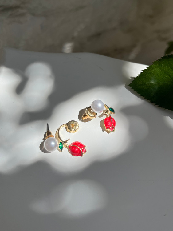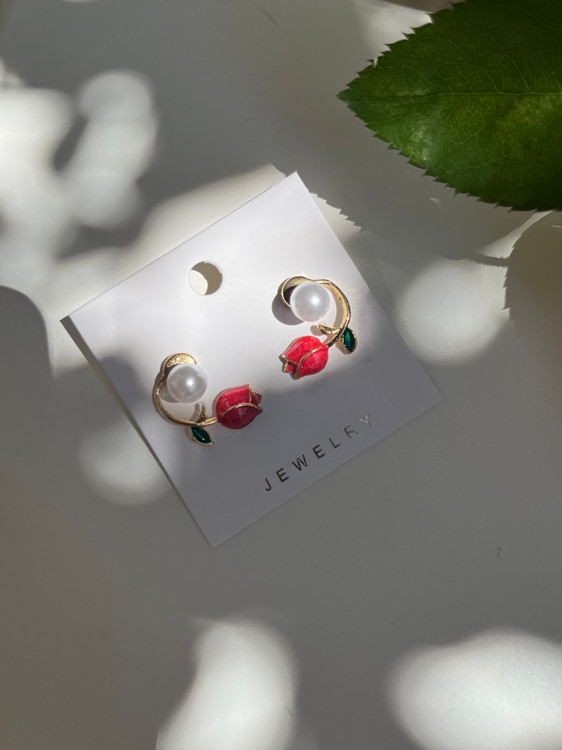 ترکیب دو تکه گل لاله و گوی مروارید، جلوهای خاص و جذاب بهش داده که هرجایی نمیبینی🌷