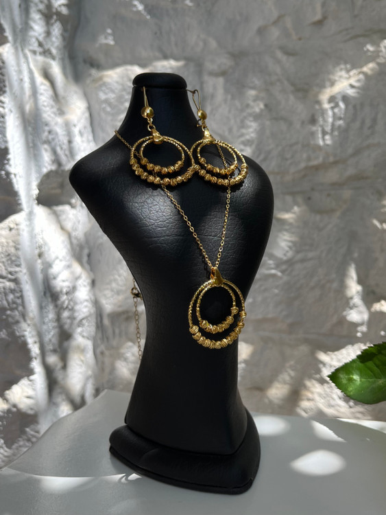 اگه دنبال یه نیم ست شیک و جذاب هستی که هم برای استفاده روزمره مناسب باشه هم مهمونی، این نیم ست طلاروس طرح البرنادو دقیقاً همونه 👌