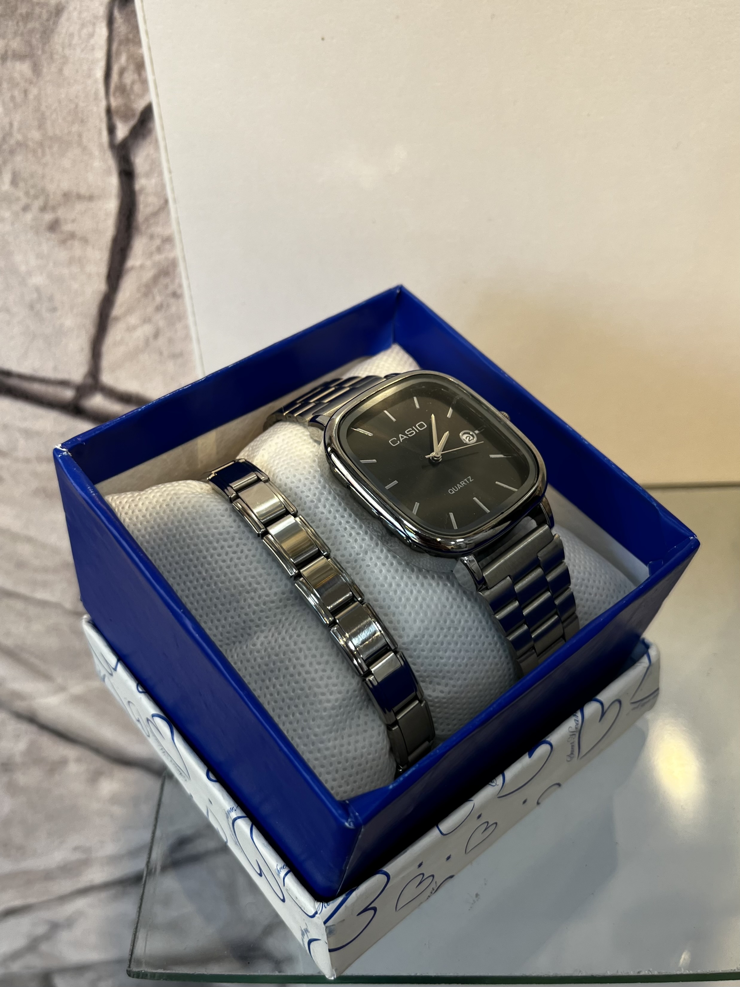 این ساعت و دستبند چارم طوری طراحی شدن که براق و آیینه ای هستن و چارم قابل حکاکی هم هست که جلوه خاصی به استایلت میدن.