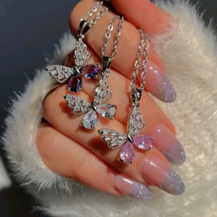 یه گردنبند شیک و دخترونه با طرح پروانه و نگین های سوارسکی توی چهار رنگ جذاب که توی همون نگاه اول دل آدمو میبره✨