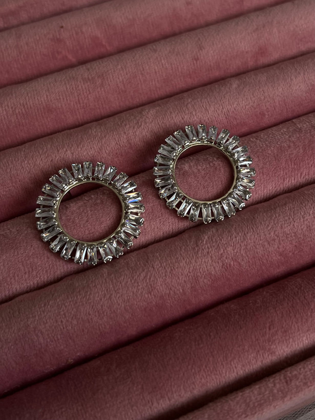 دو مدل گوشواره جواهری شیک و لوکس با طرح قلب و دایره و نگین های باگت که توی همون نگاه اول دل آدمو میبره✨