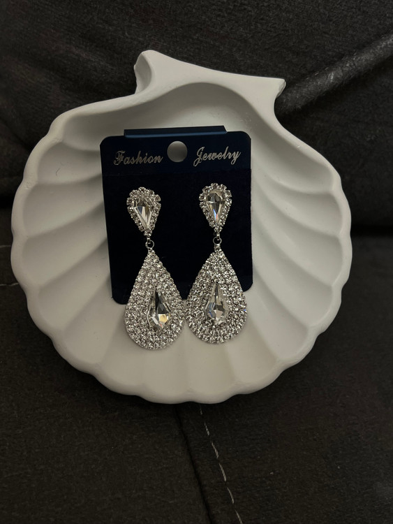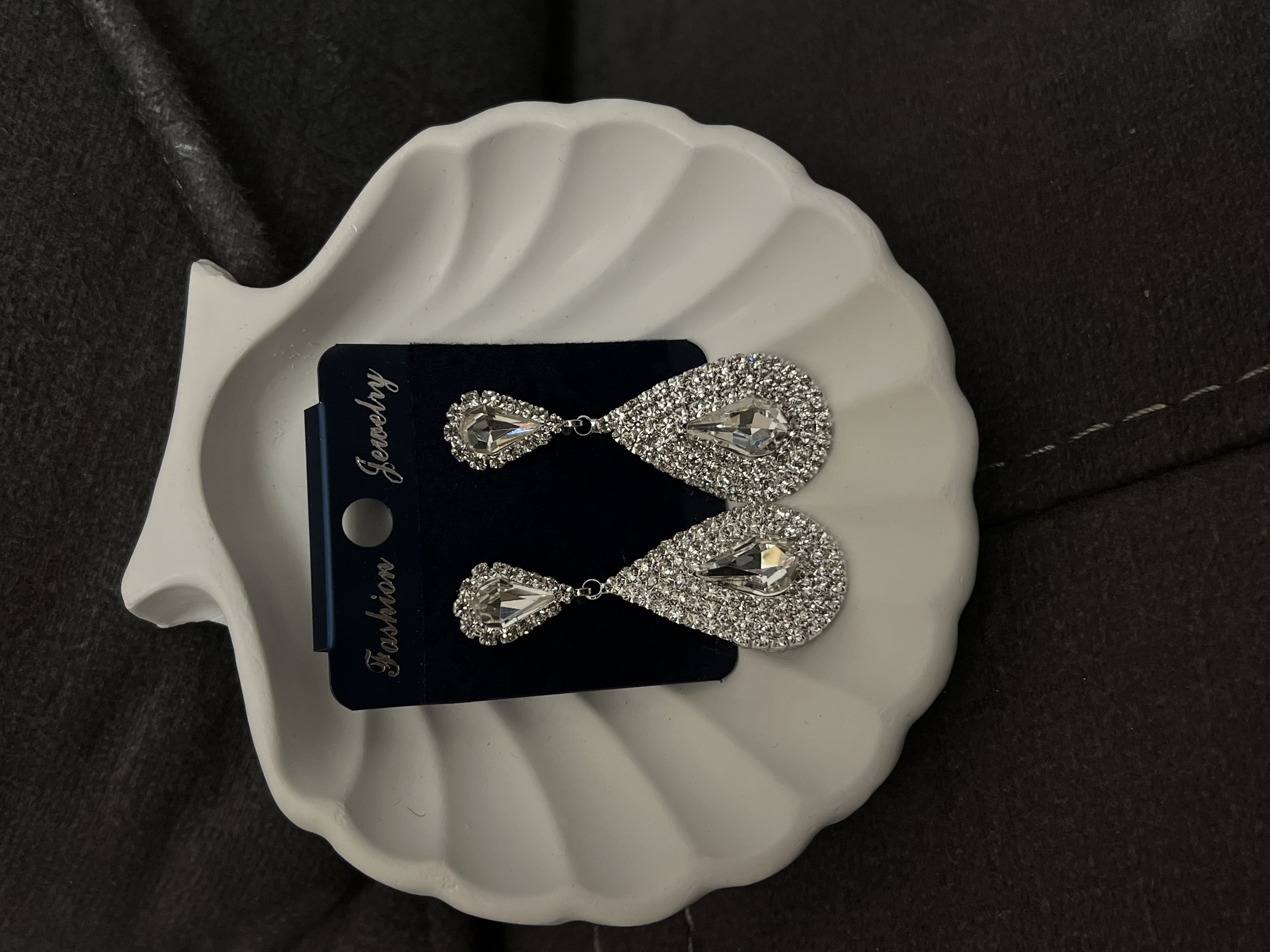 گوشواره جواهری شیک و لوکس اشکی با نگین های باگت که توی همون نگاه اول دل آدمو میبره✨