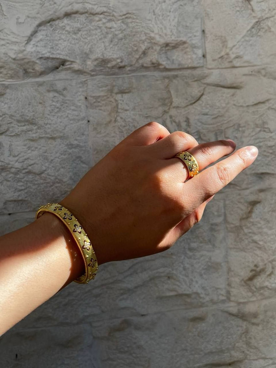 ست بنگل و انگشتر زنانه طرح طلا | آبکاری 18 عیار | پوشش نانو | فریسایز