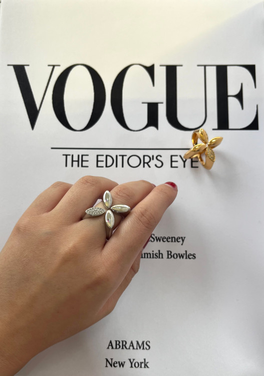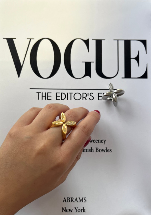 این انگشتر فشن با طرح ۴ پر نیمه نگین، دقیقاً همون اکسسوریه که استایلت رو از معمولی به خاص تبدیل میکنه.