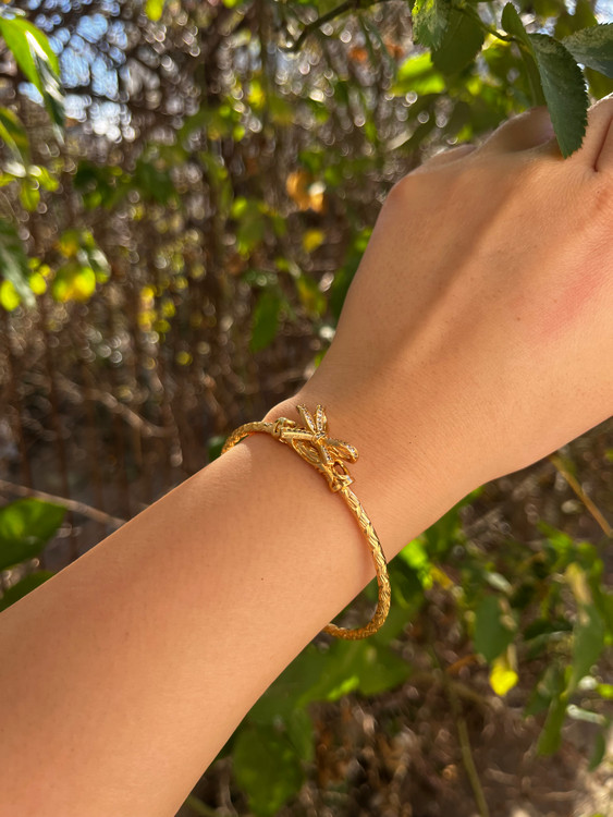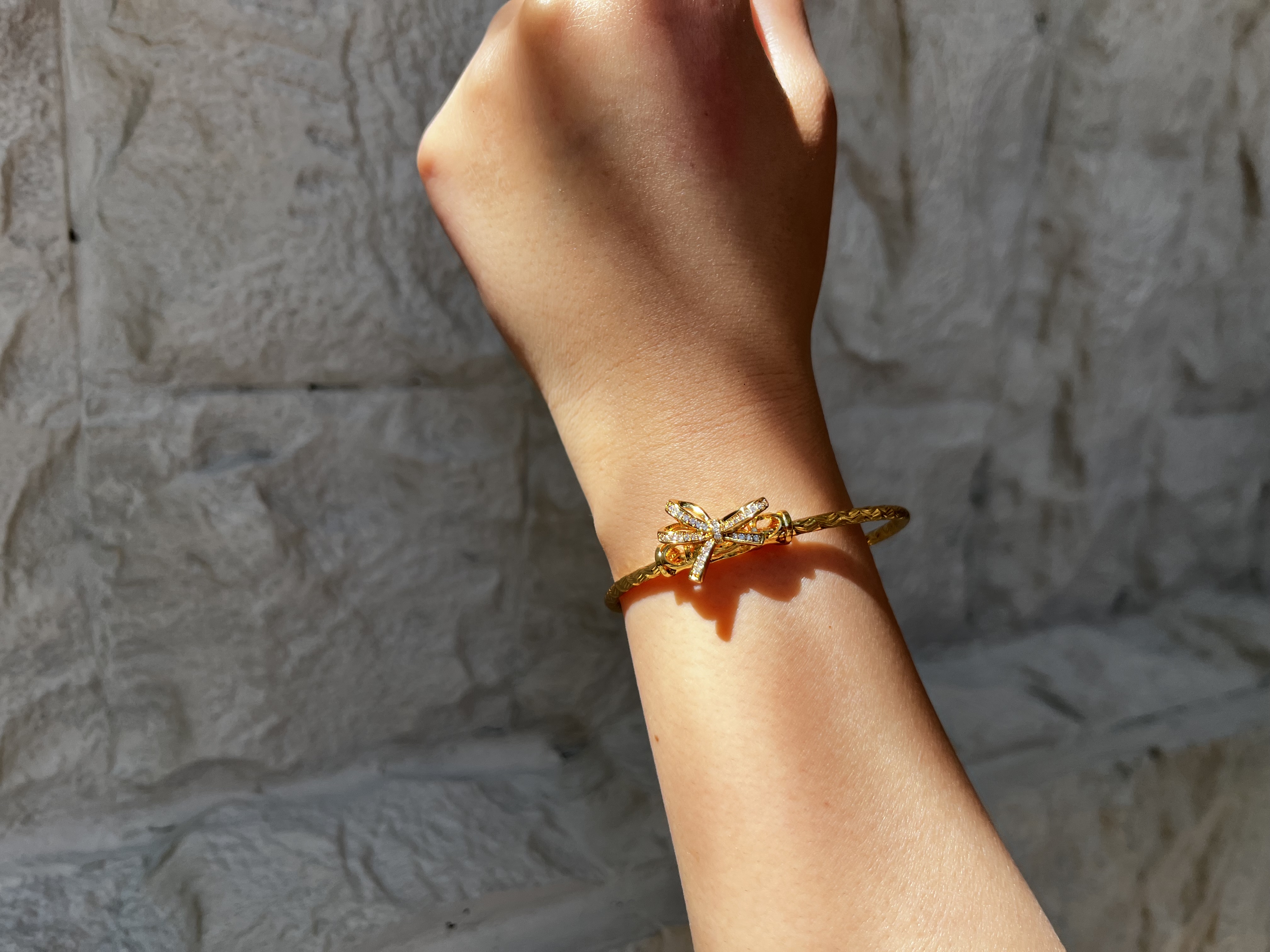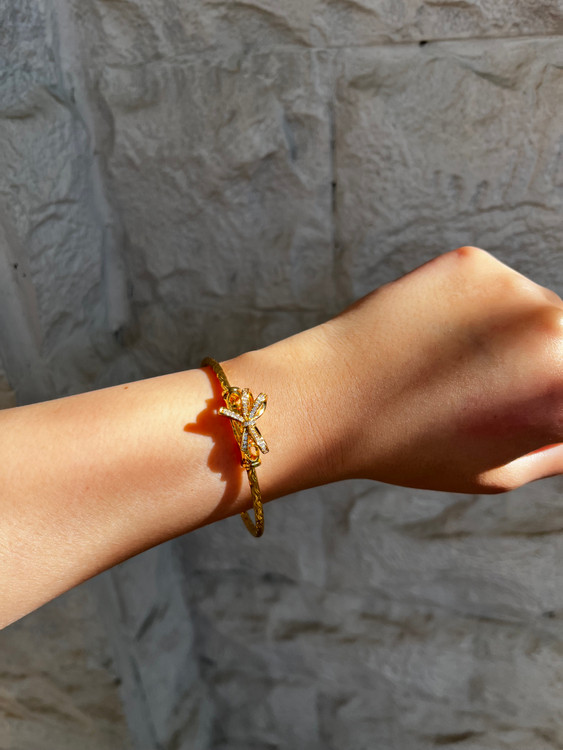 اگه دنبال یه بنگل دخترونهی شیک هستی که هم باهاش توی مجالس بدرخشی و هم یه گزینه عالی برای هدیه و کادو باشه این بنگل پاپیون طلایی فول نگین بهترین گزینهست!